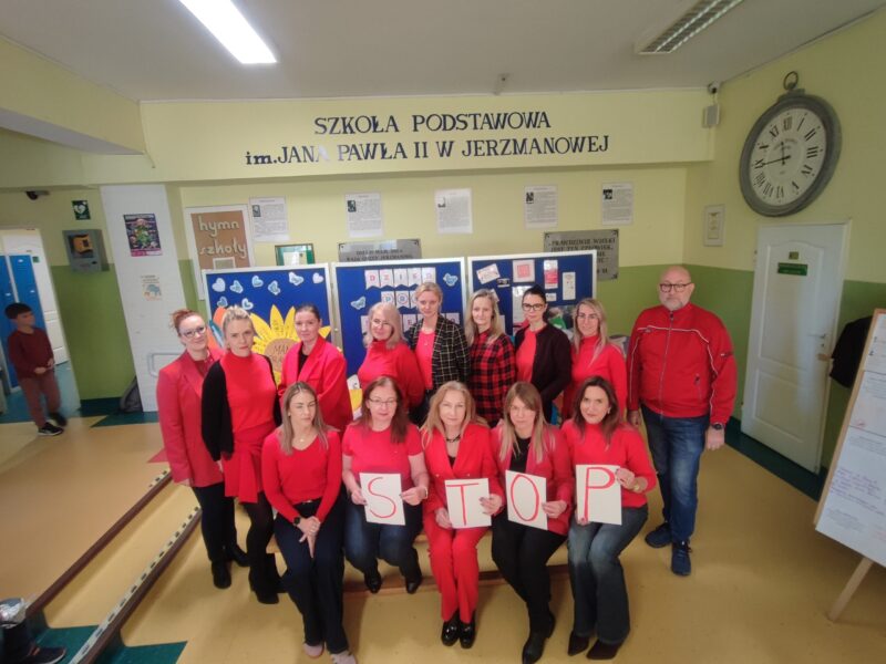 W dniu 19.11 o godzinie 17:00 nasza szkoła została podświetlona na czerwono jako symboliczny gest solidarności z ogólnopolską kampanią „Dzieciństwo bez przemocy”. Inicjatywa ta przypomina o konieczności reagowania na wszelkie formy krzywdzenia dzieci oraz o wspieraniu najmłodszych w budowaniu bezpiecznego, pełnego szacunku środowiska. Dyrekcja, współpracownicy oraz uczniowie również wspierają akcję.Czytaj więcej