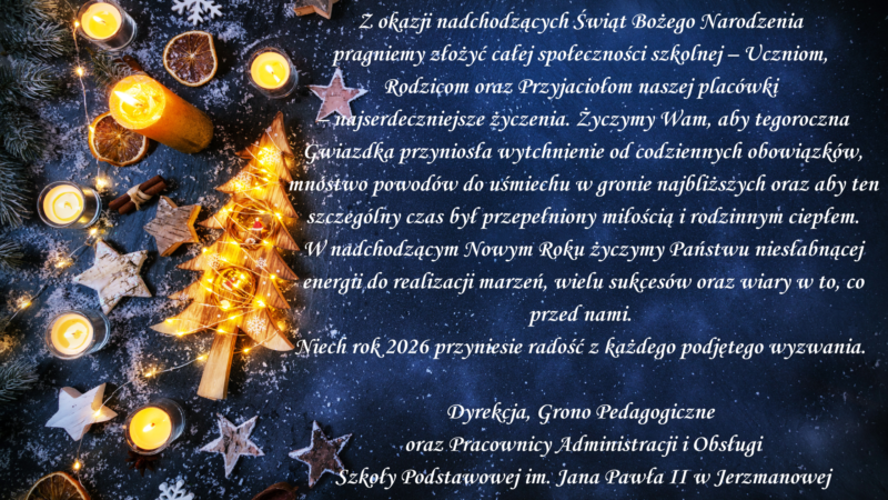 DNIA 15 .12.2025 R. W SZKOLE PODSTAWOWEJ IM. JANA PAWŁA II W JERZMANOWEJ ZOSTAŁ PO RAZ ÓSMY ZORGANIZOWANY MARATON PISANIA LISTÓW W OBRONIE PRAW CZŁOWIEKA. W maratonie brali udział chętni uczniowie klas VIII oraz nauczyciele i pracownicy szkoły. Uczniowie na wcześniej przygotowanych tablicach z sylwetkami osób mogli zapoznać się z bohaterami tegorocznego maratonu. Maraton...Czytaj więcej