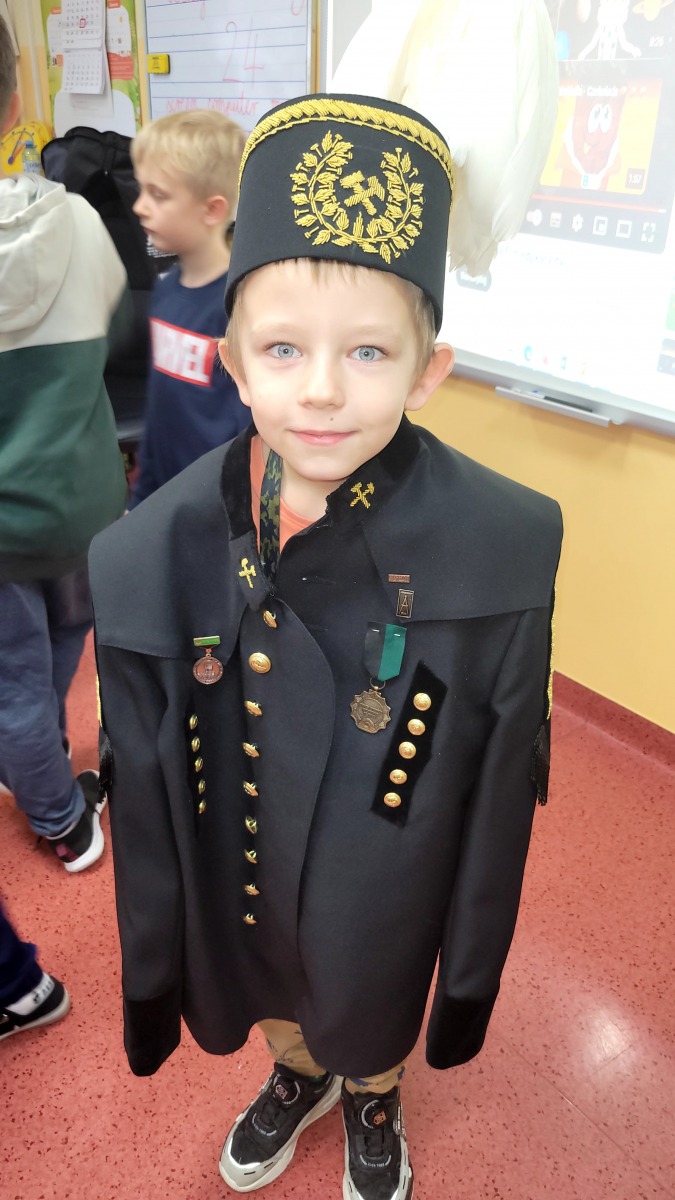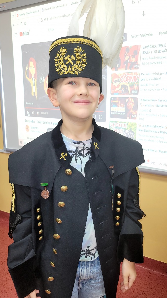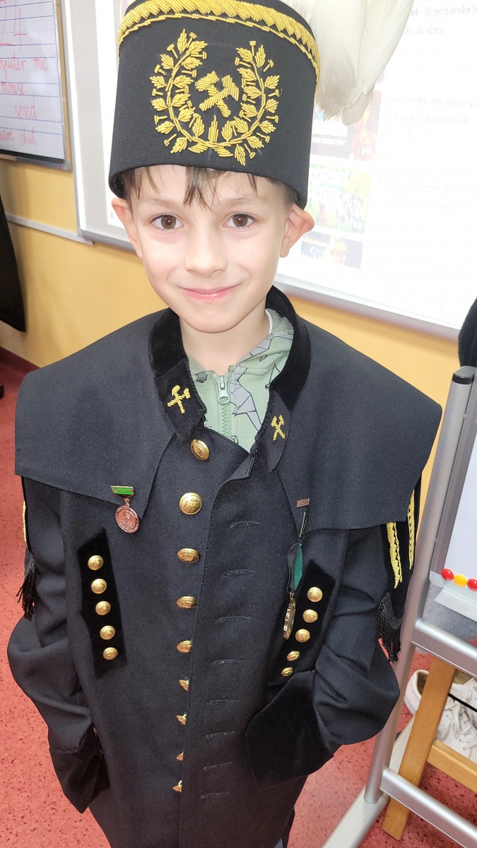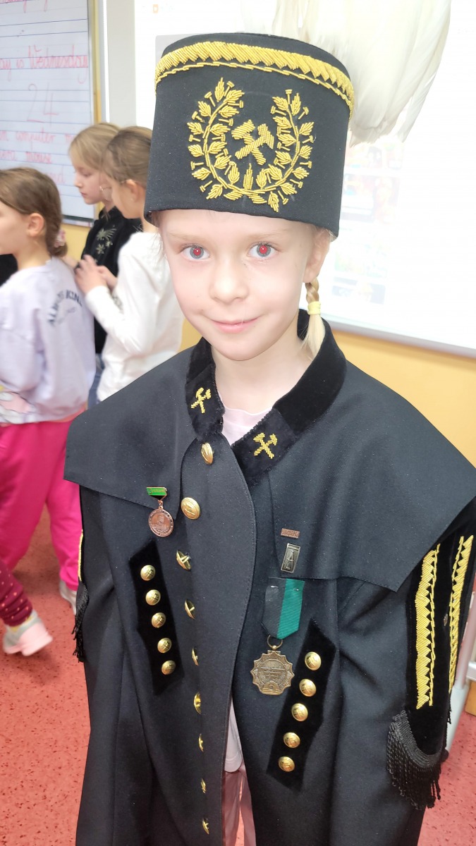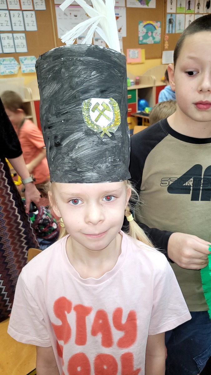 Podczas dzisiejszych zajęć świetlicowych uczniowie klas młodszych obejrzały krótki film edukacyjny o pracy w kopalni, poznając codzienne obowiązki i wyzwania górników. Miały także okazję zobaczyć i przymierzyć elementy munduru górniczego, co sprawiło im wiele radości.