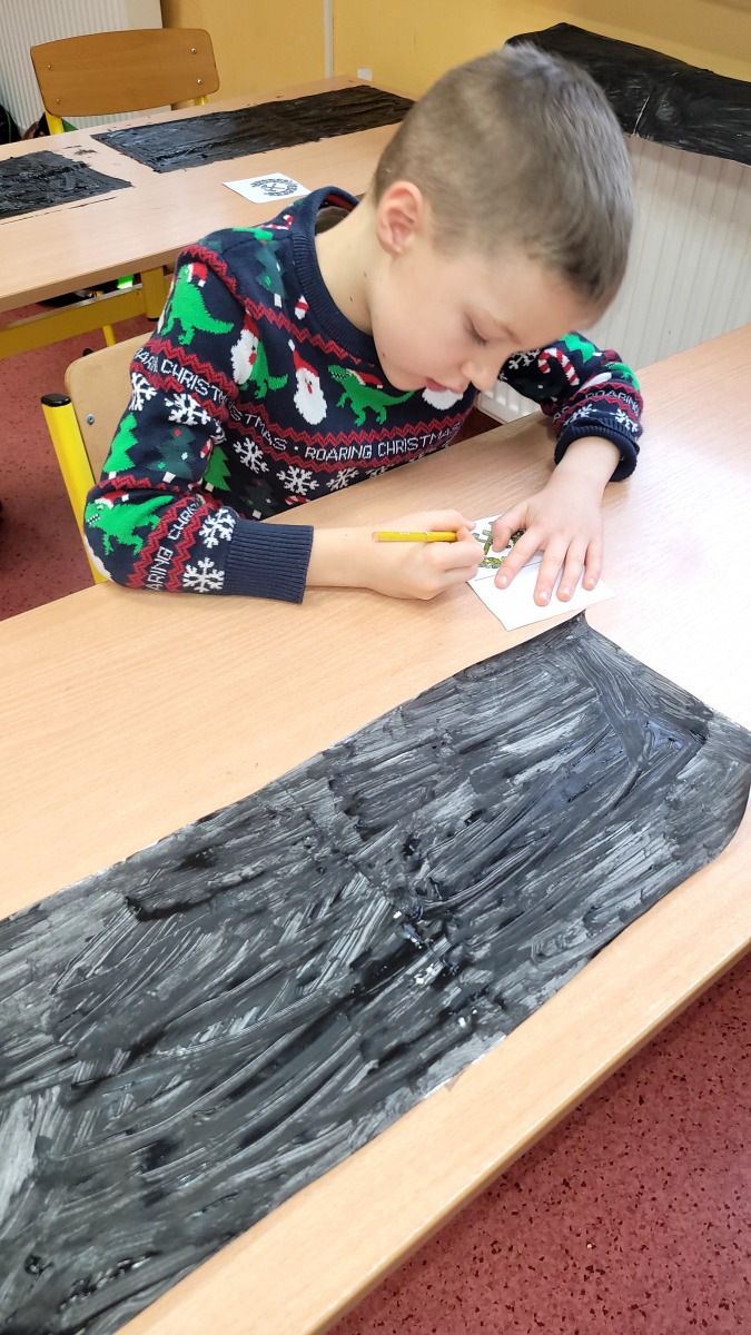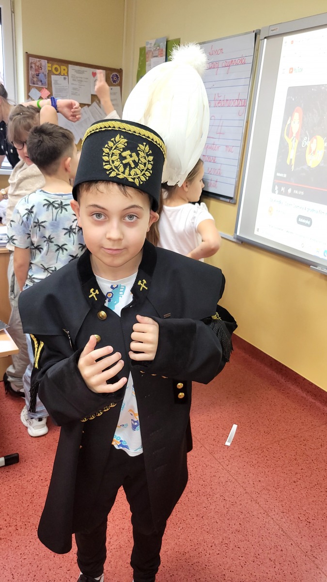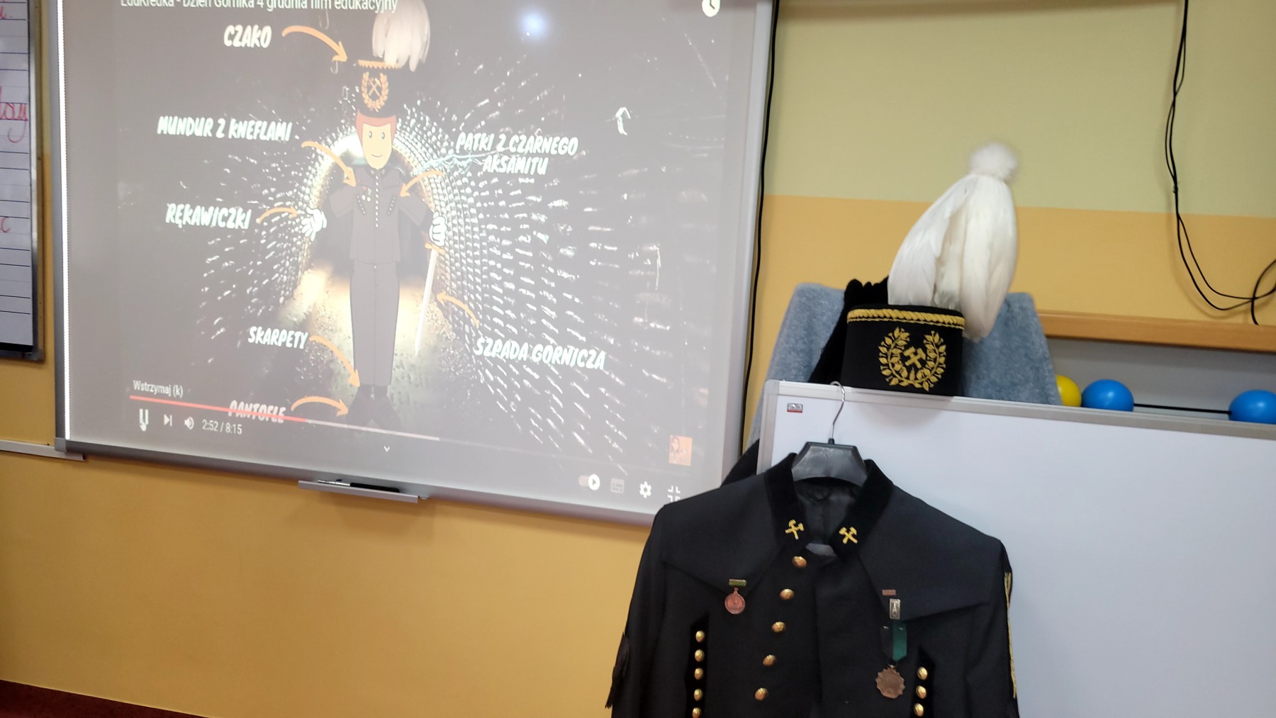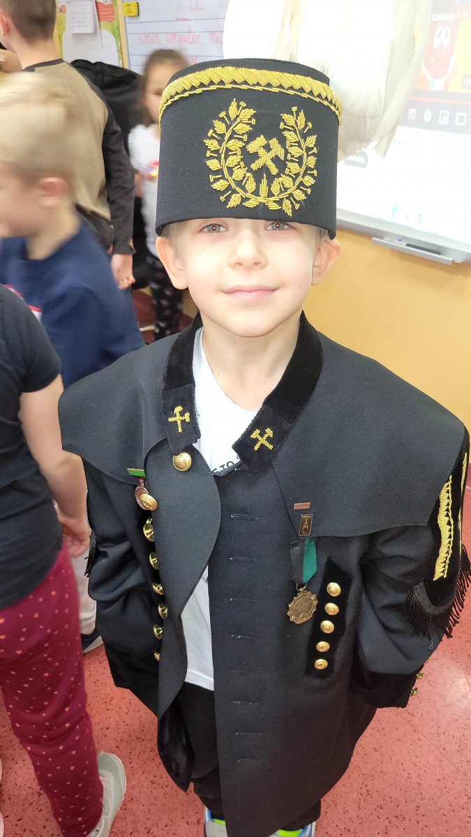 Podczas dzisiejszych zajęć świetlicowych uczniowie klas młodszych obejrzały krótki film edukacyjny o pracy w kopalni, poznając codzienne obowiązki i wyzwania górników. Miały także okazję zobaczyć i przymierzyć elementy munduru górniczego, co sprawiło im wiele radości.