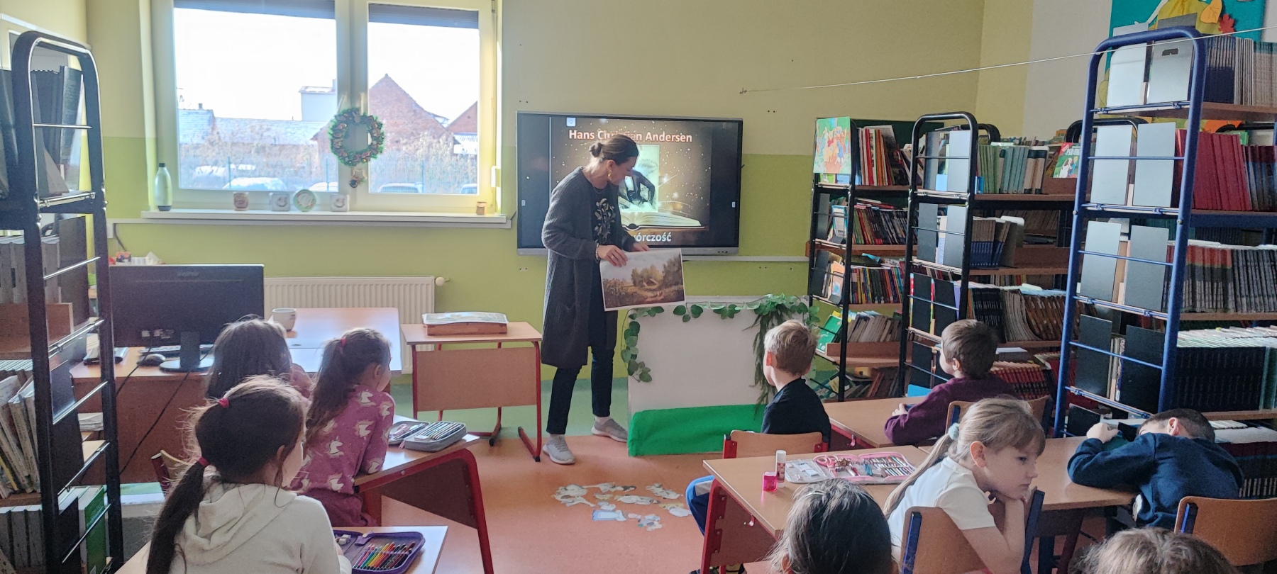 29 listopada uczniowie klas pierwszych uczestniczyli w lekcji bibliotecznej poświęconej jednej z baśni H.Ch. Tekst duńskiego pisarza, przedstawiony przy pomocy teatrzyku kamishibai, zyskał nowy wymiar. Wyobraźnia uczniów, pobudzona za pomocą dźwięku i obrazu, pozwoliła wczuć się w rolę kaczątka, które zmieniło się w pięknego łabędzia. Przy pomocy dodatkowych aktywności uczniowie utrwalili sobie kolejność wydarzeń przedstawionych w tekście. Zapraszamy na kolejne lekcje z lekturą 🙂