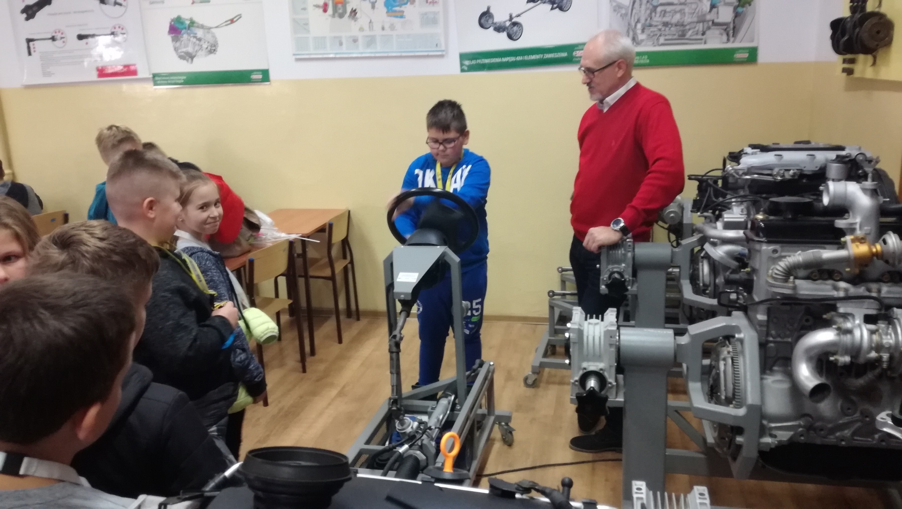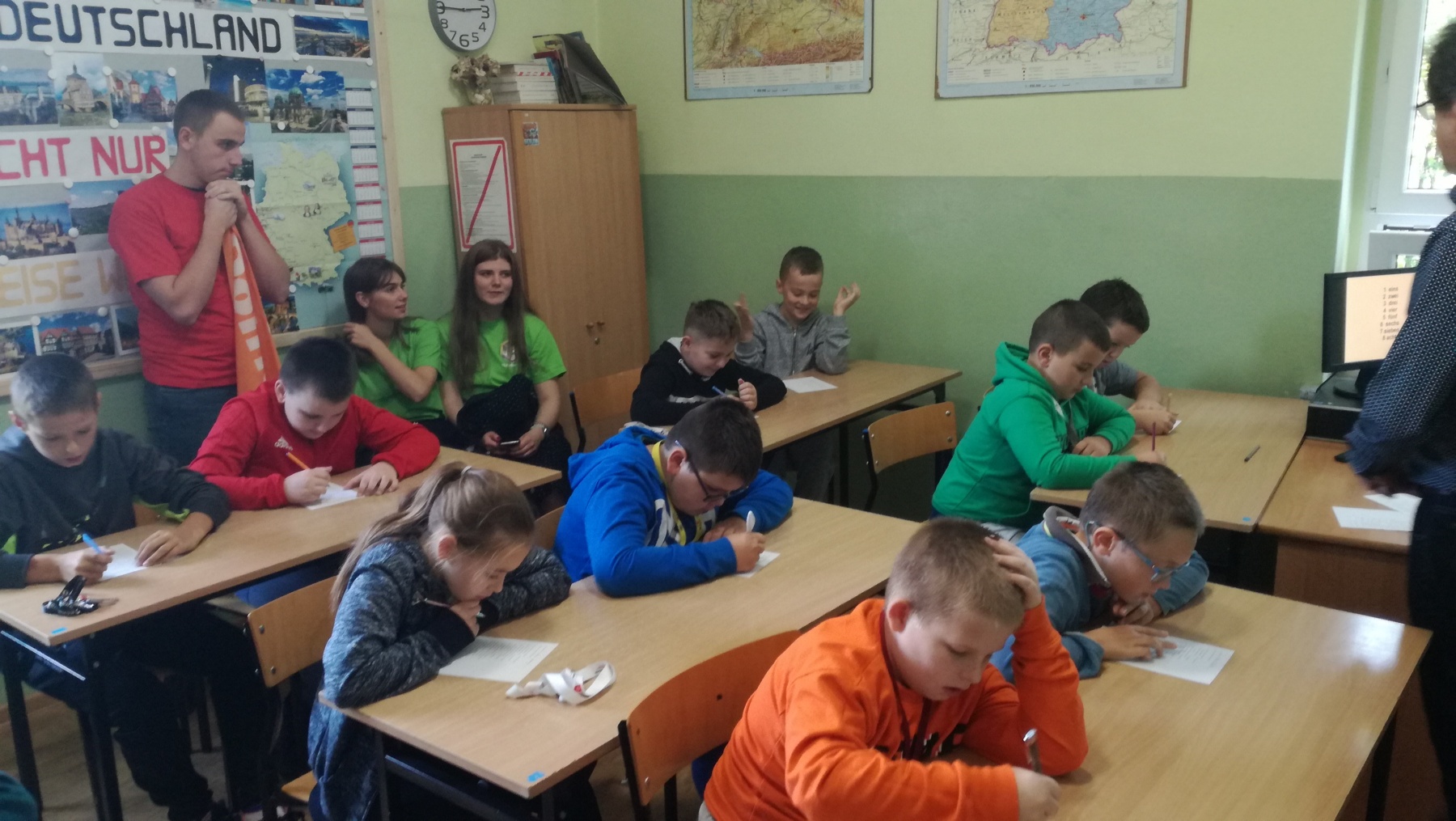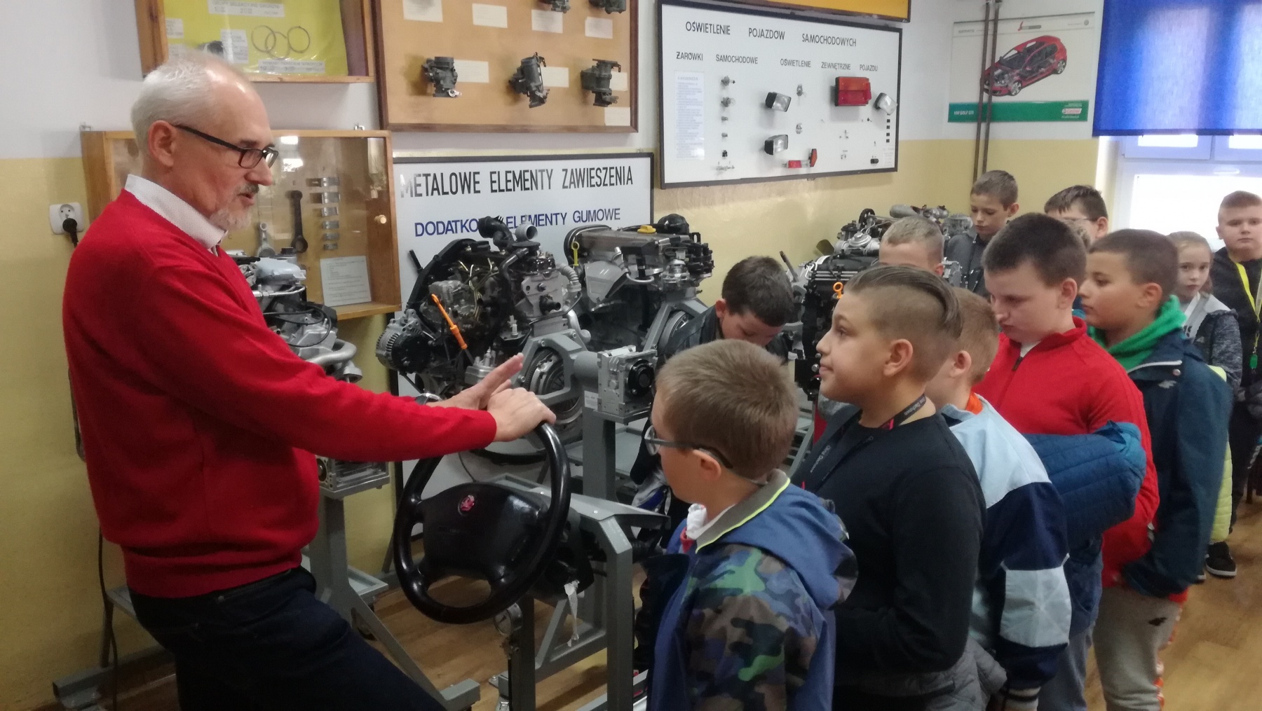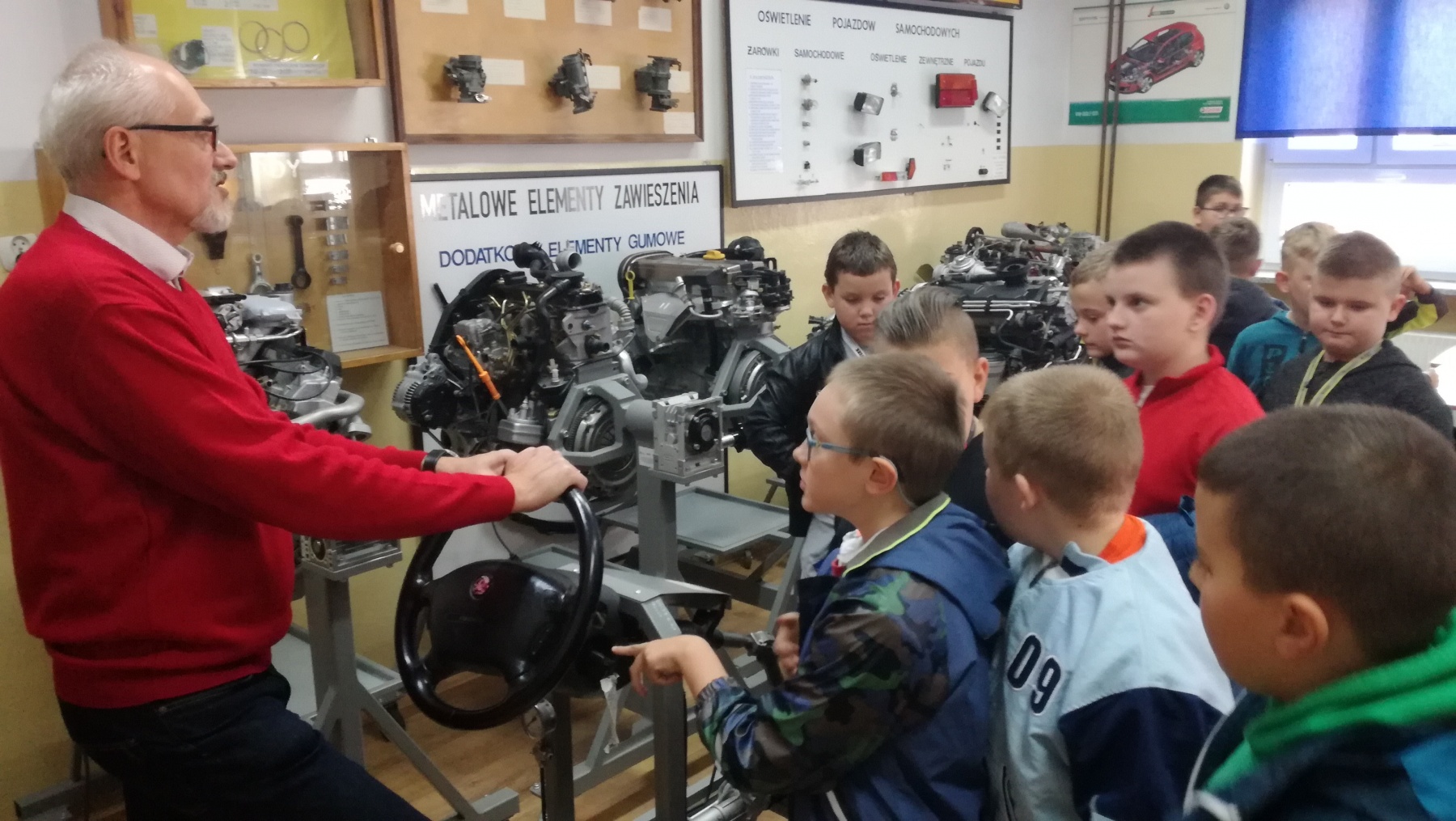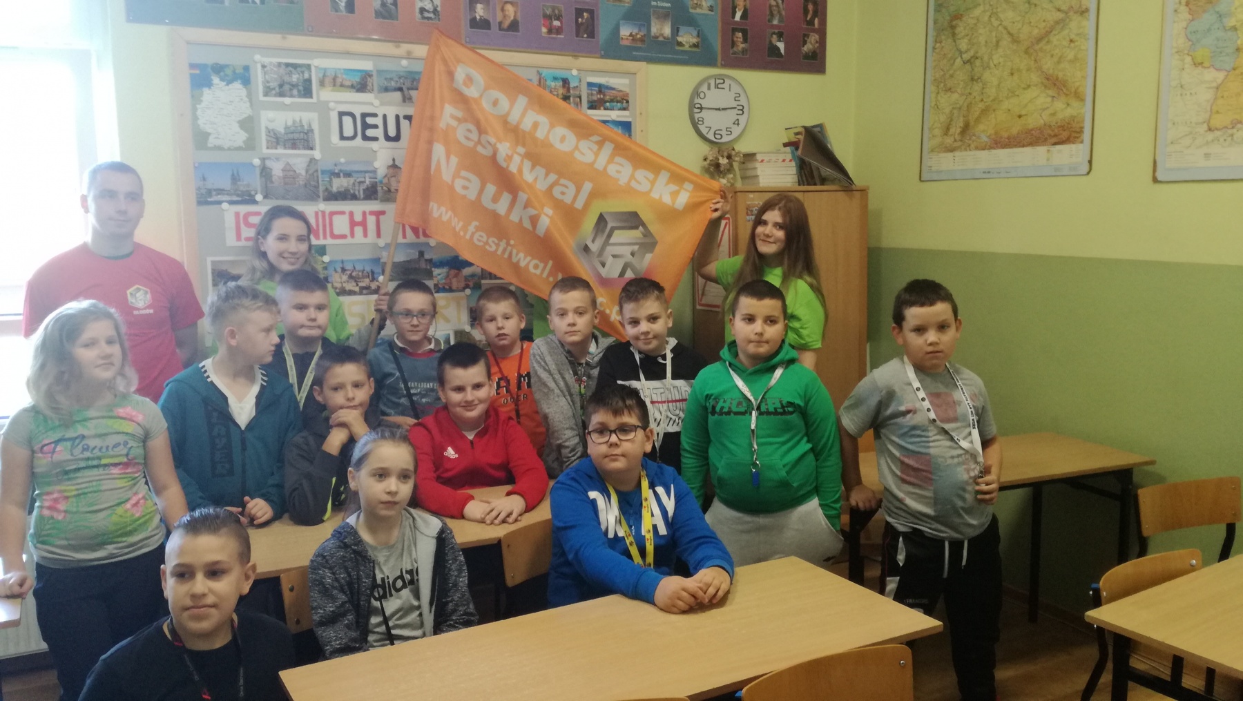 Uczniowie klasy IV uczestniczyli w niezwykłej lekcji „Niemcy-nasi sąsiedzi” w ramach Głogowskiej Edycji Regionalnej XXII Dolnośląskiego Festiwalu Nauki. Zajęcia odbywały się w Zespole Szkół Samochodowych i Budowlanych im. Leonarda da Vinci w Głogowie. Zajęcia dotyczące wiadomości o Niemczech zakończyły się testem, który najlepiej napisał Mikołaj Kasprzak. Serdecznie gratulujemy uczniom ogromnej wiedzy o naszym sąsiedzie. Pokaz maszyn skonstruowanych według projektów Leonarda da Vinci czy sprawdzenie, jak działa wspomaganie kierownicy – to niezapomniane doświadczenia dla naszych uczniów. Dziękujemy za zaproszenie i polecamy się za rok.
