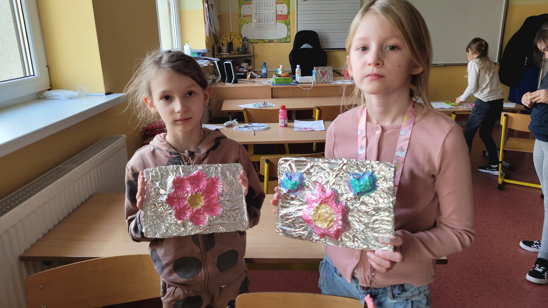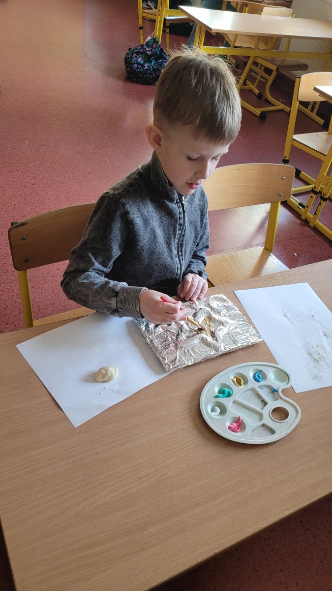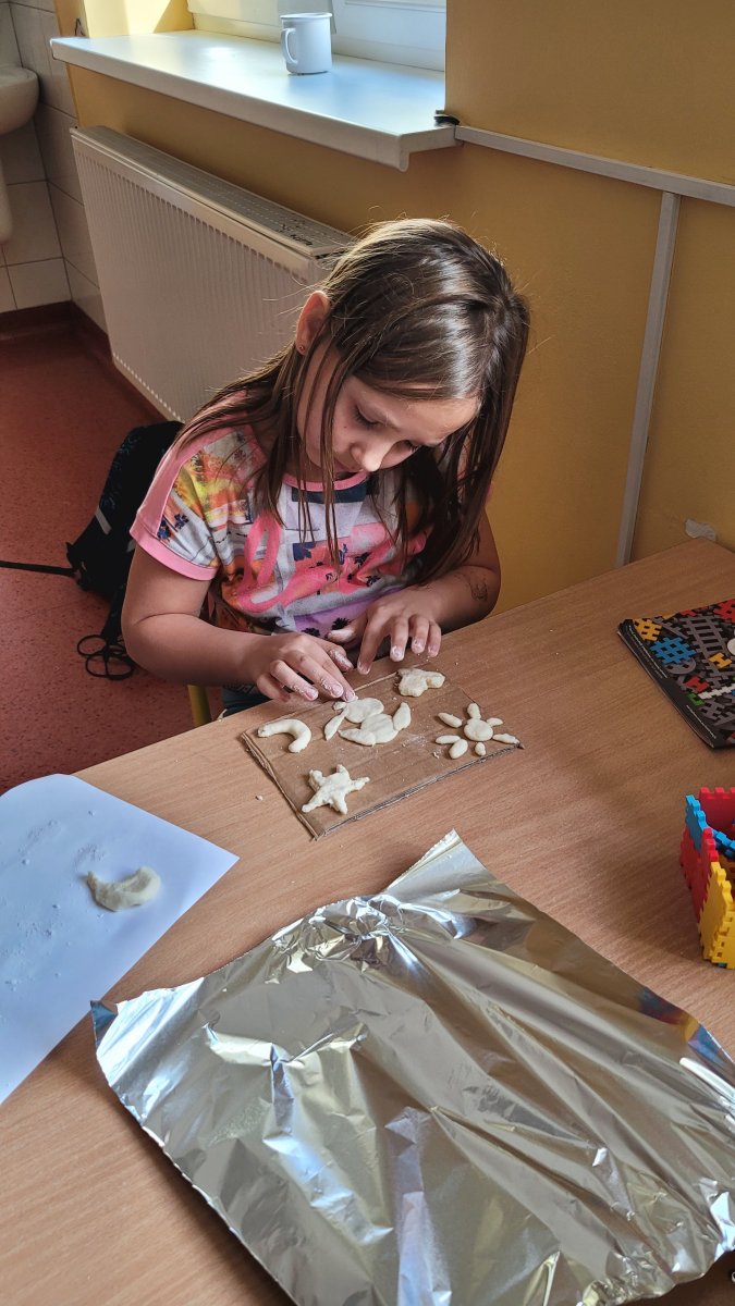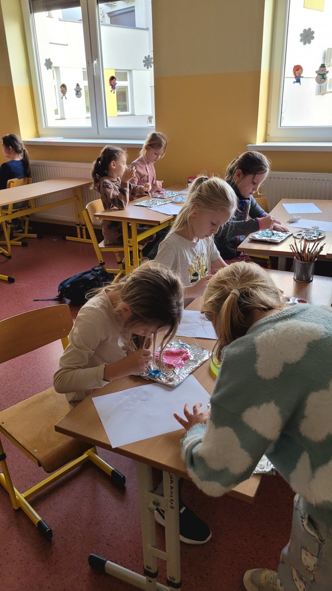 Z okazji Dnia Babci i Dziadka dzieci z naszej świetlicy przygotowały wyjątkowe prace plastyczne. Wykonały srebrne obrazy przestrzenne, wykorzystując między innymi folię aluminiową i masę solną. Każde dziecko stworzyło swoją własną, unikalną kompozycję.