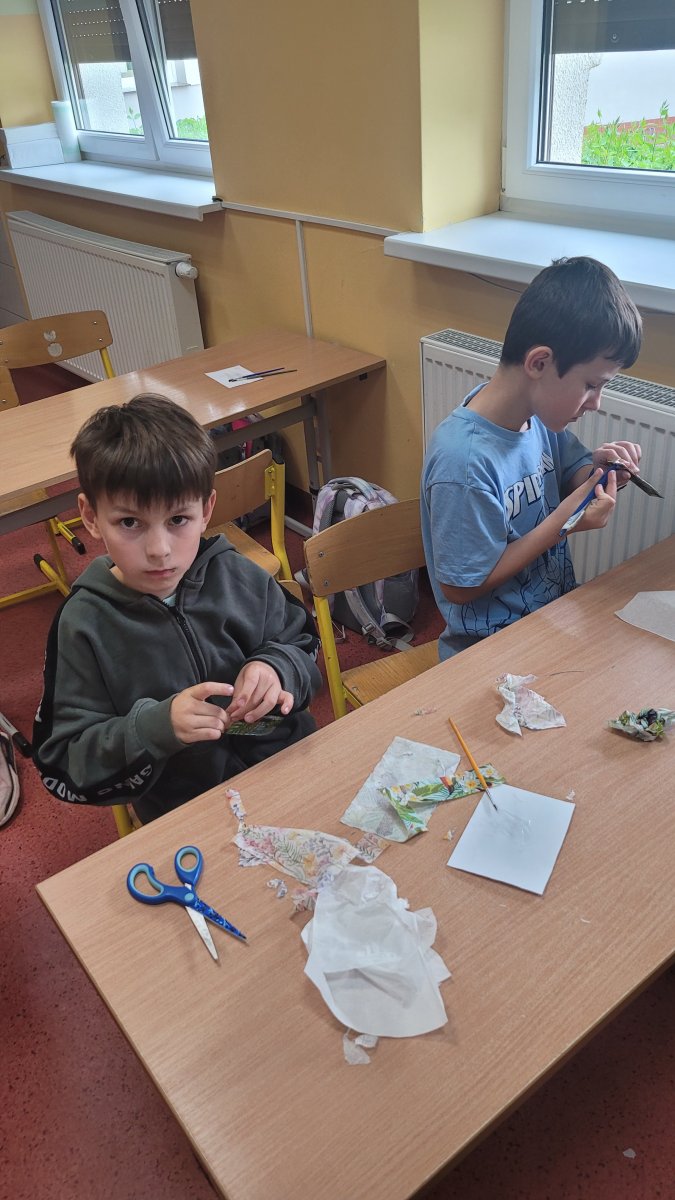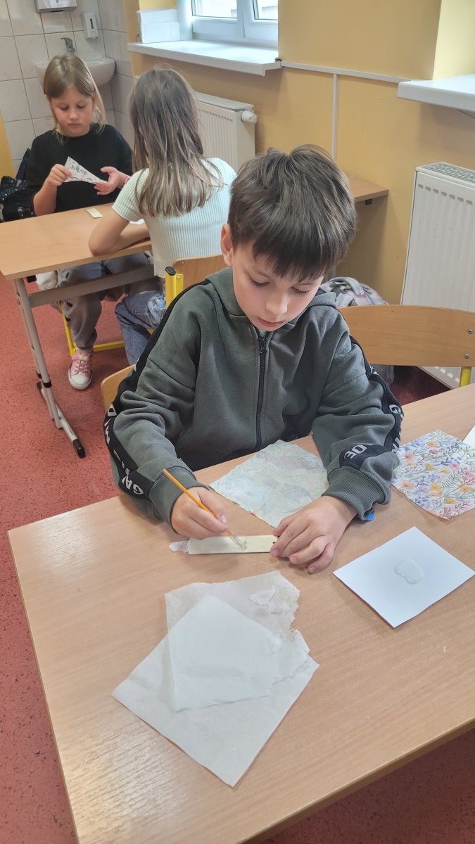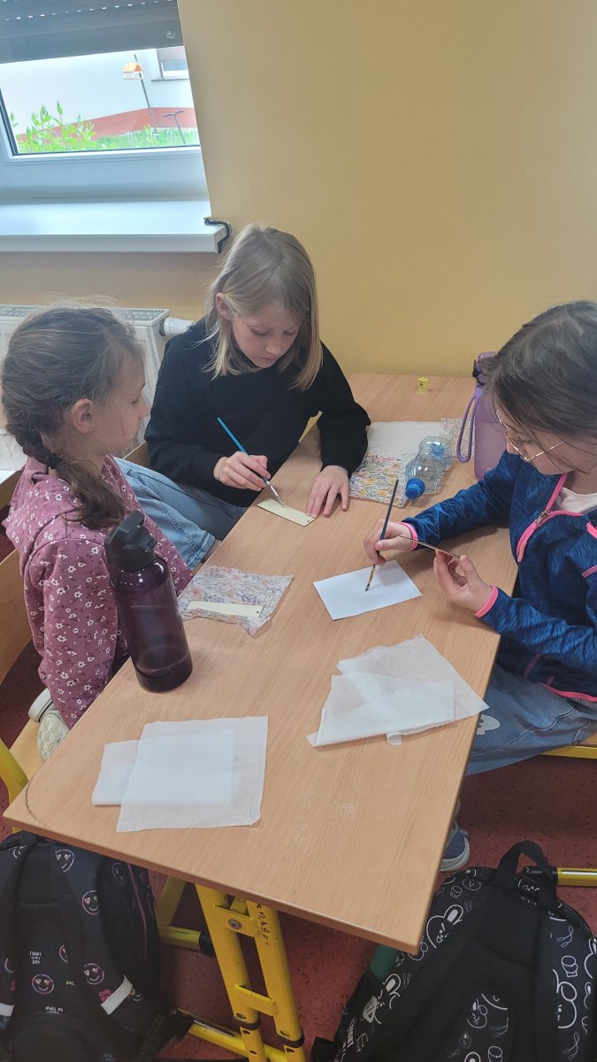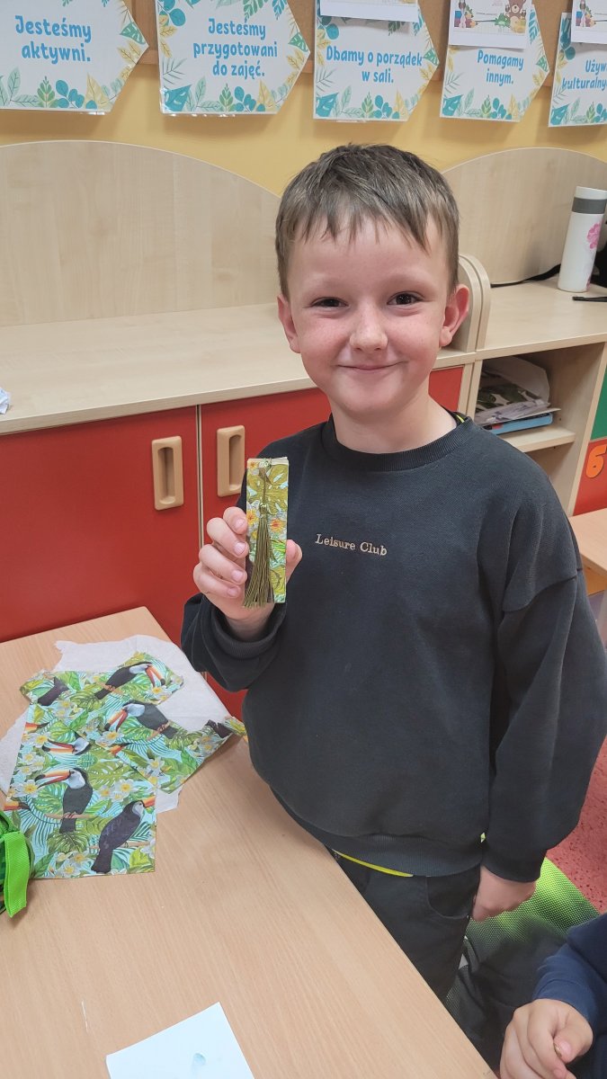 Dziś na zajęciach świetlicowych uczniowie stworzyli upominki dla swoich mam, które – według dzieci – większość domowego czasu spędzają… z nosem w książce! Dlatego zakładka do książki wykonana metodą decoupage to prezent idealny dla wszystkich mam, które „cierpią” na nadmiar czasu i nigdy nie rozstają się z lekturą.