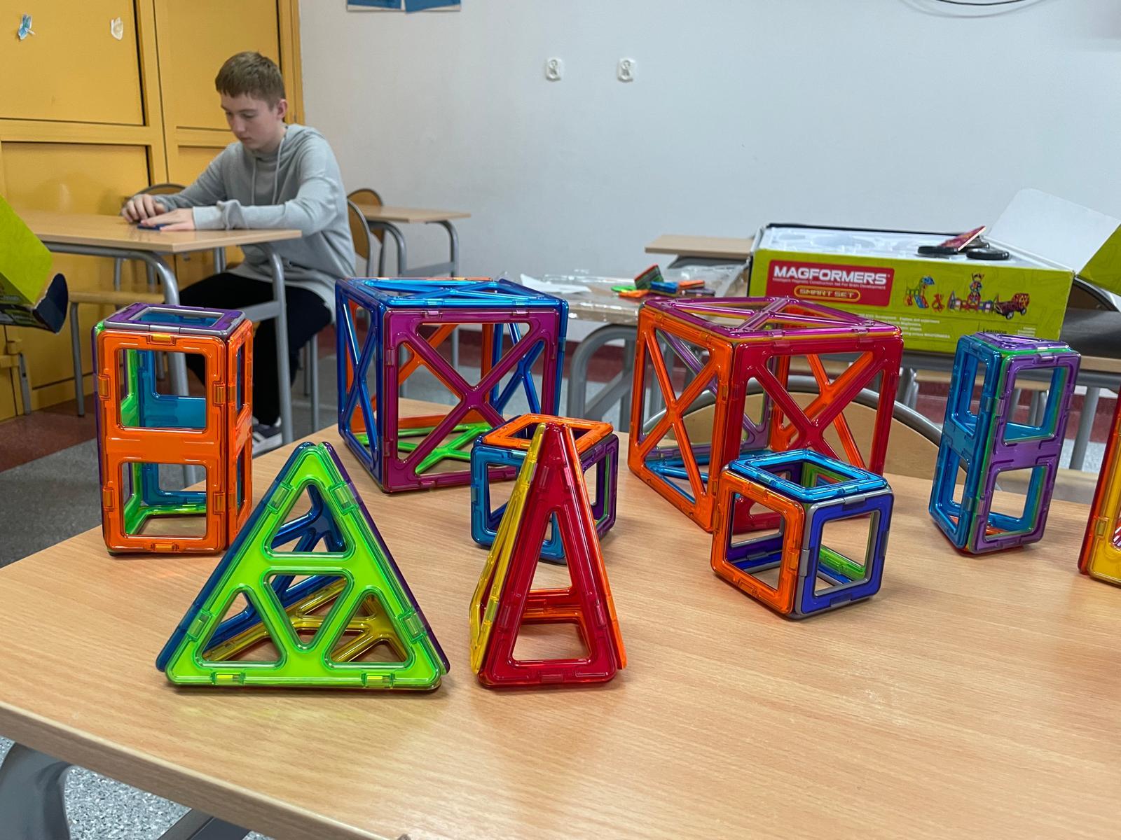 Egzamin ósmoklasisty zbliża się wielkimi krokami, dlatego na lekcjach matematyki stawiamy na skuteczne i nieszablonowe metody utrwalania wiedzy. Uczniowie klas 8 wykorzystali klocki Magformers z programu Laboratoria Przyszłości, aby przenieść geometrię z kartek zeszytu do świata rzeczywistego.