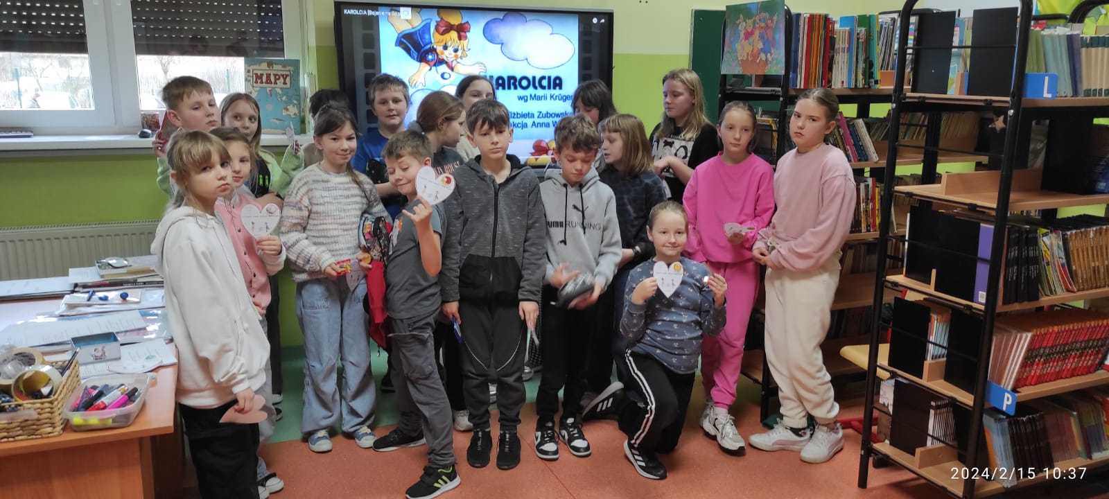Kolejna klasa, tym razem 3b, zmagała się z lekturą “Karolcia”. Lekcja przeprowadzona w bibliotece szkolnej przez panią Barbarę Tuczyńską okazała się strzałem w dziesiątkę. Klasowy konkurs z wiedzy o książce pozwolił utrwalić przeczytaną treść. Ta forma pracy z tekstem wpływa również na kształtowanie takich kompetencji miękkich, jak współpraca w grupie, organizacja pracy czy umiejętności komunikacyjne. Okazało się, że uczniowie doskonale znają książkę i wszyscy zasłużyli na dyplom i tytuł “Przyjaciela Karolci”. Dodatkową atrakcją była słodka nagroda dla wszystkich uczestników zmagań czytelniczych. Zapraszamy do szkolnej biblioteki 🙂