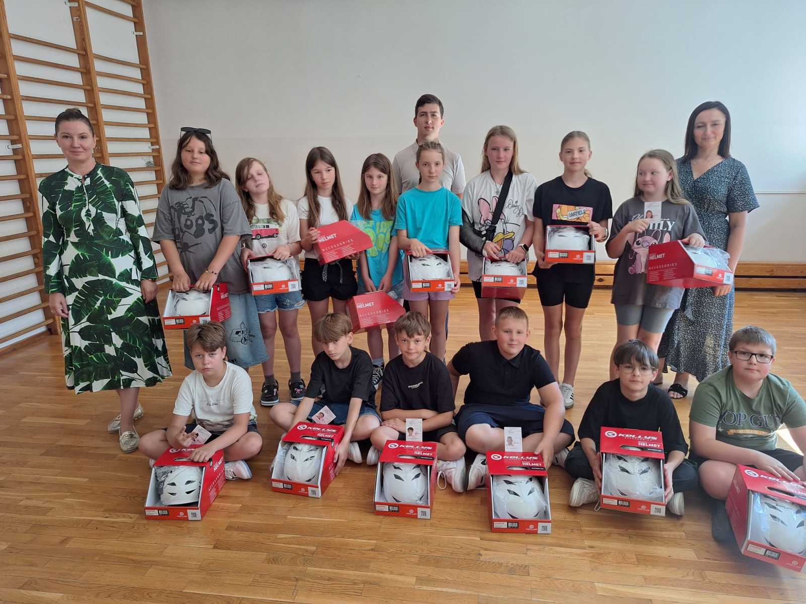 Dzisiaj, z okazji zdobycia uprawnień, dzieciom zostały wręczone karty rowerowe oraz kaski ufundowane przez Wójta Gminy Jerzmanowa Panią Annę Obolewicz, a gratulacje złożyła im Pani Wicedyrektor Agnieszka Greczyńska-Witkowicz oraz nauczyciel techniki i Pan Adam Szewców.