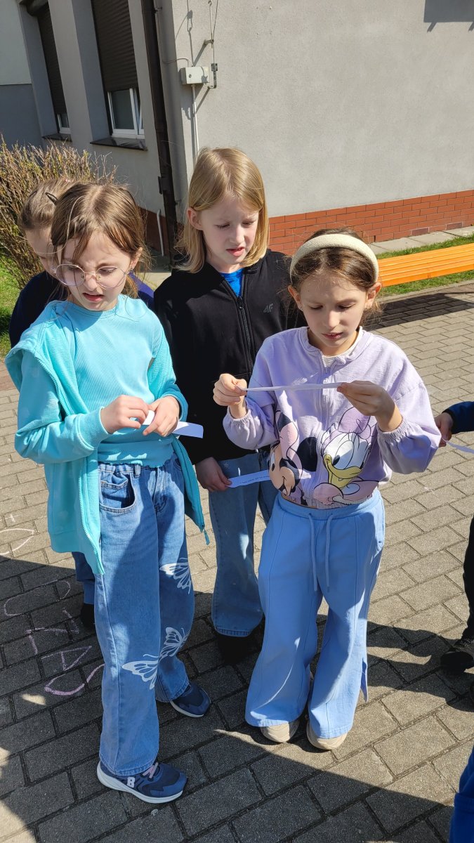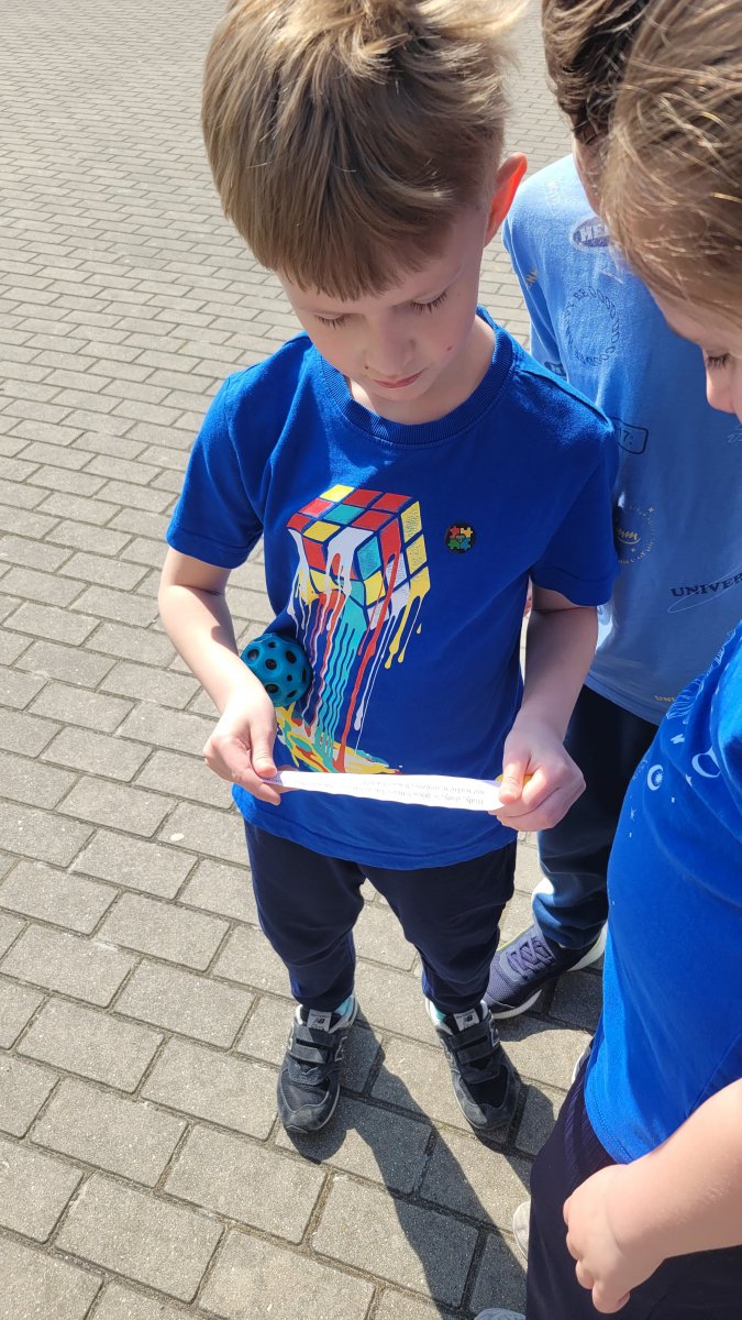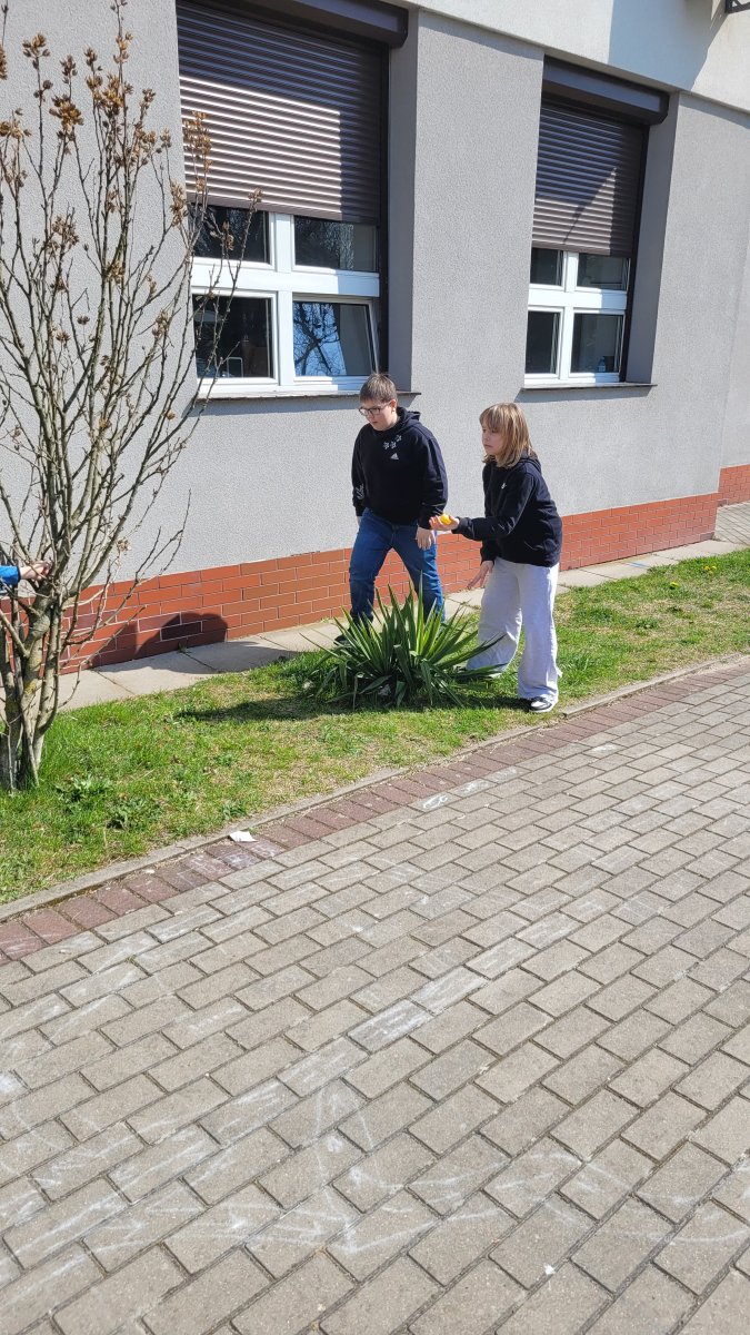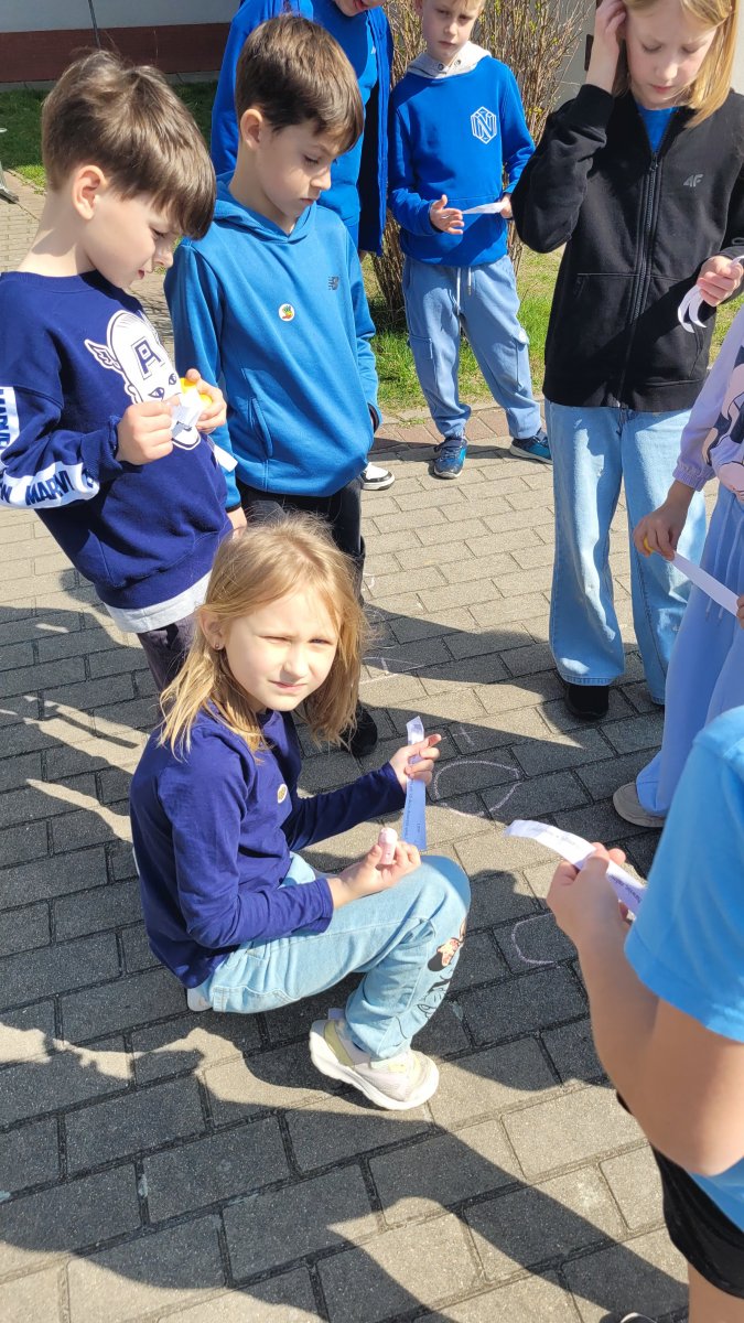 Podczas zajęć świetlicowych uczniowie mieli okazję zabawić się w prawdziwych poszukiwaczy! Dzieci miały za zadanie znaleźć ukryte na szkolnym placu jajka, w których znajdowały się zagadki. Rozwiązywanie ich prowadziło do stworzenia wspólnego, wiosennego hasła.