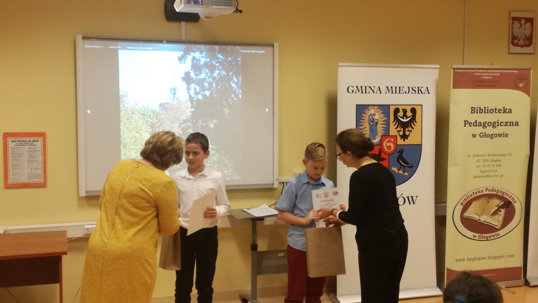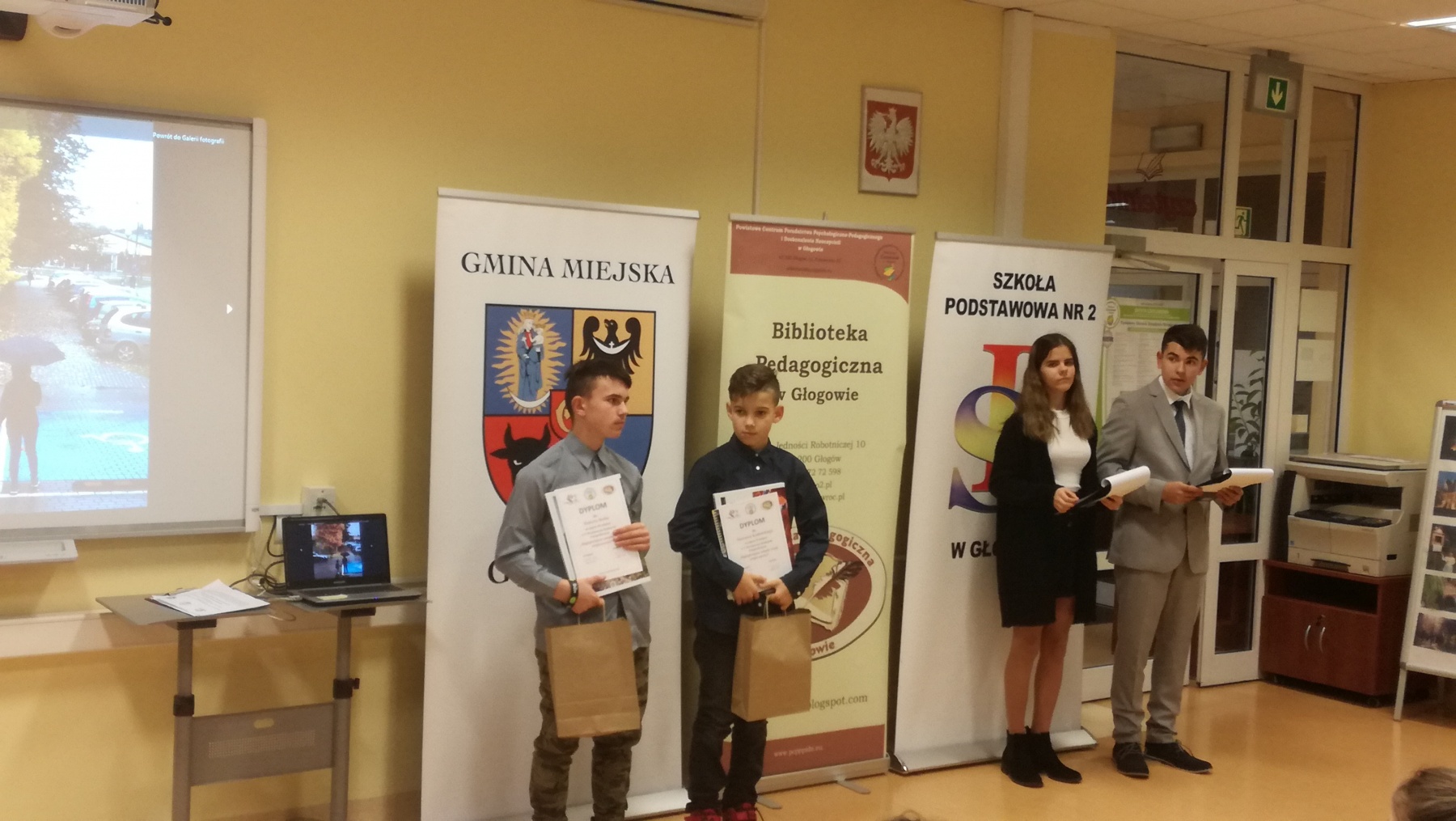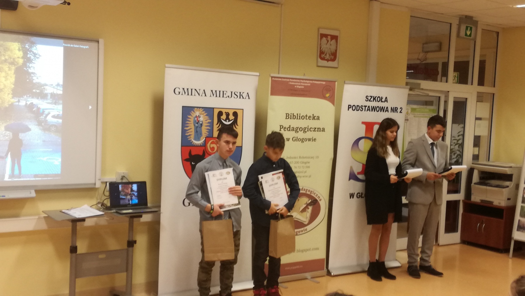 Uczniowie Szkoły podstawowej im. Jana Pawła II w Jerzmanowej bardzo chętnie biorą udział w różnych konkursach. Rozwijają swoje pasje i zainteresowania, a przy okazji zdobywają nagrody. Z dumą informujemy iż laureaci z naszej szkoły V Powiatowego Konkursu Fotograficznego „Najpiękniejsze zakątki mojej miejscowości ” to: Dominik Piątek – III miejsce w kategorii klas I-III, Mateusz Knihnicki – II miejsce w kategorii klas IV-VIII, Paweł Tuczyński – wyróżnienie w tej samej kategorii. Uroczyste wręczenie nagród nastąpiło 28 listopada w Bibliotece Pedagogicznej w Głogowie. Uczniowie, wraz z opiekunem szkolnym – panią Barbara Tuczyńską otrzymali pamiątkowe kalendarze, w których wyeksponowano nagrodzone zdjęcia. Gratulujemy wszystkim uczestnikom konkursu i zachęcamy do dalszej aktywności.