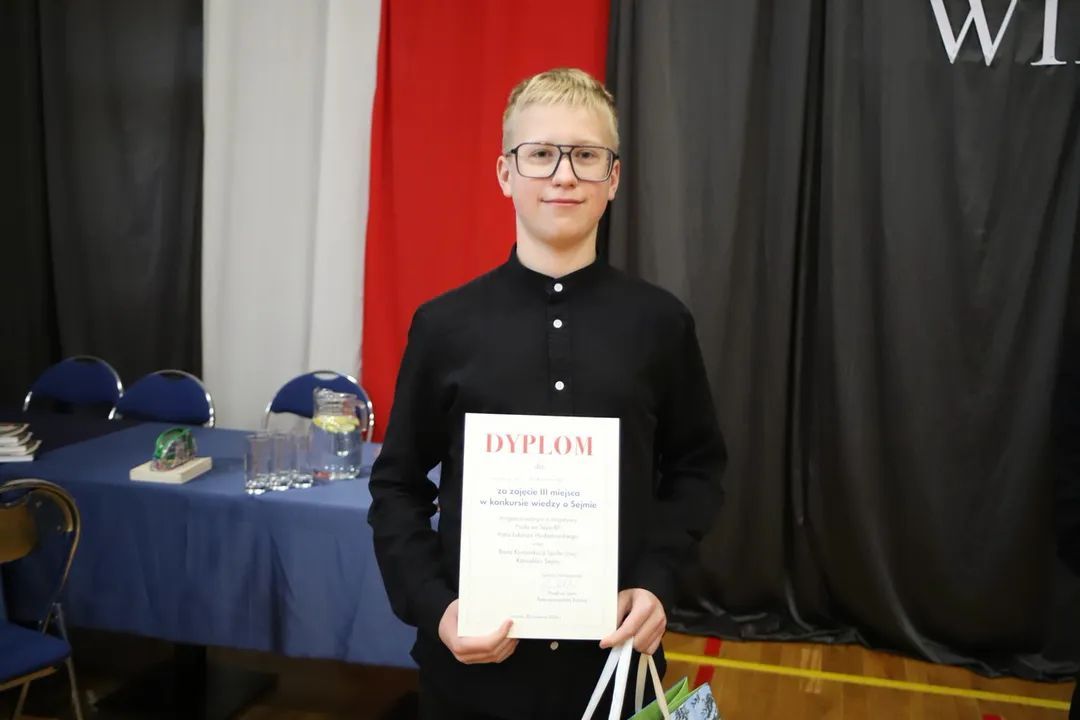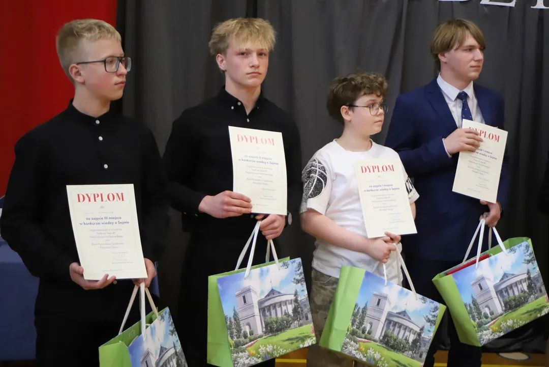 Po części edukacyjnej – prelekcji o kulisach pracy przy ul. Wiejskiej oraz pokazie filmu o powstawaniu ustaw – 29 uczniów z całego powiatu (Nielubia, Kotla, Wilków, Jerzmanowa, Jaczów, Białołęka) przystąpiło do trudnego testu.