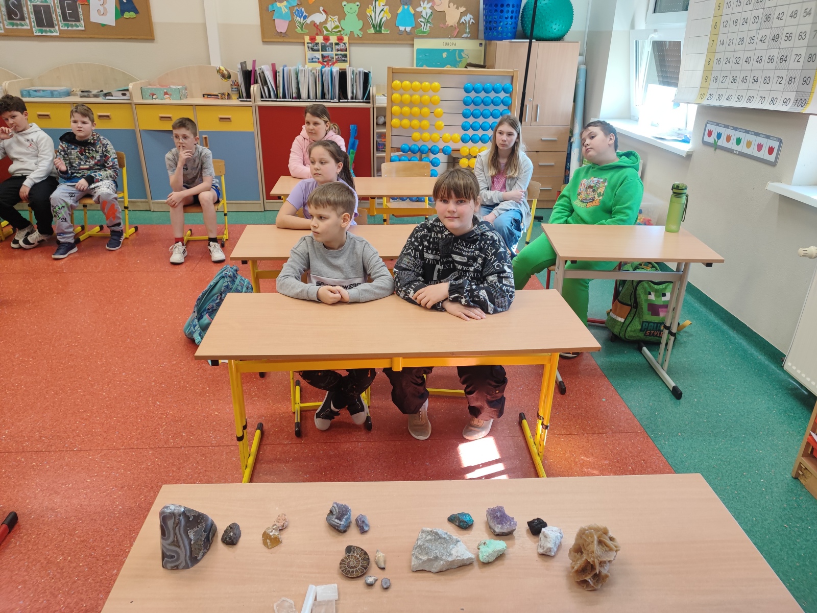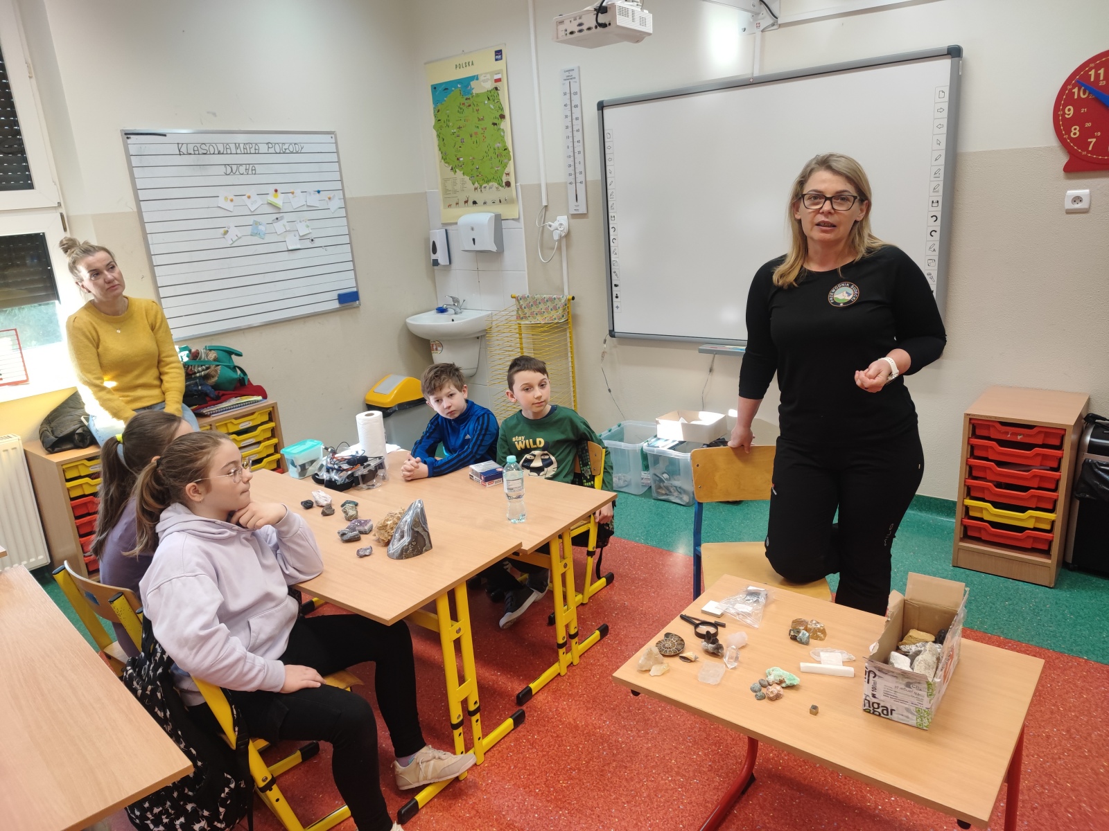 Dwie godziny warsztatów mijały jak jedna chwila. Dziękujemy pani Marcie za ciekawe wprowadzenie w świat skał i minerałów. Zapraszamy na kolejne spotkania. Z ramienia szkoły organizatorem spotkania była pani Barbara Tuczyńska.