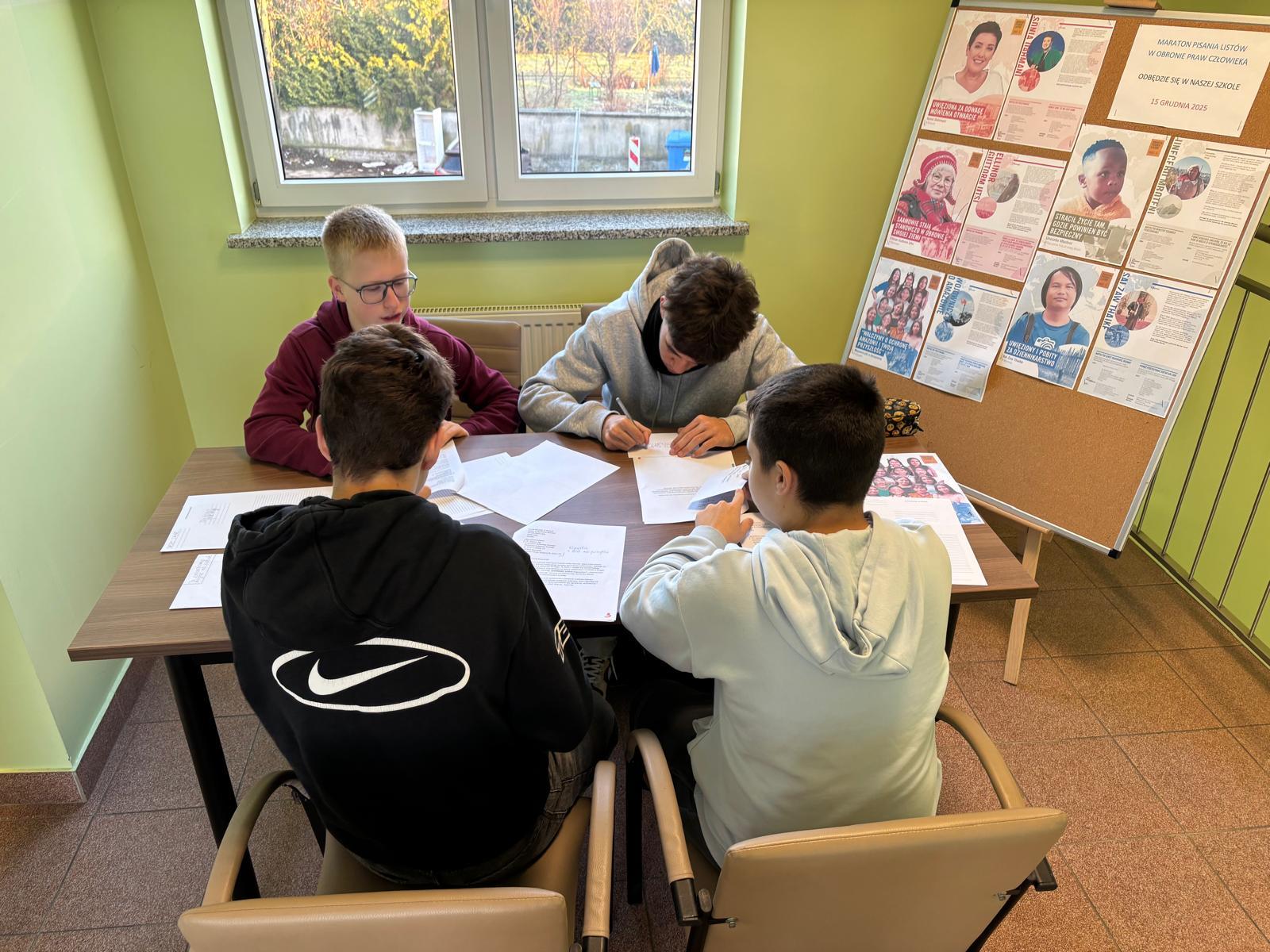 DNIA 15 .12.2025 R. W SZKOLE PODSTAWOWEJ IM. JANA PAWŁA II W JERZMANOWEJ ZOSTAŁ PO RAZ ÓSMY ZORGANIZOWANY MARATON PISANIA LISTÓW W OBRONIE PRAW CZŁOWIEKA.