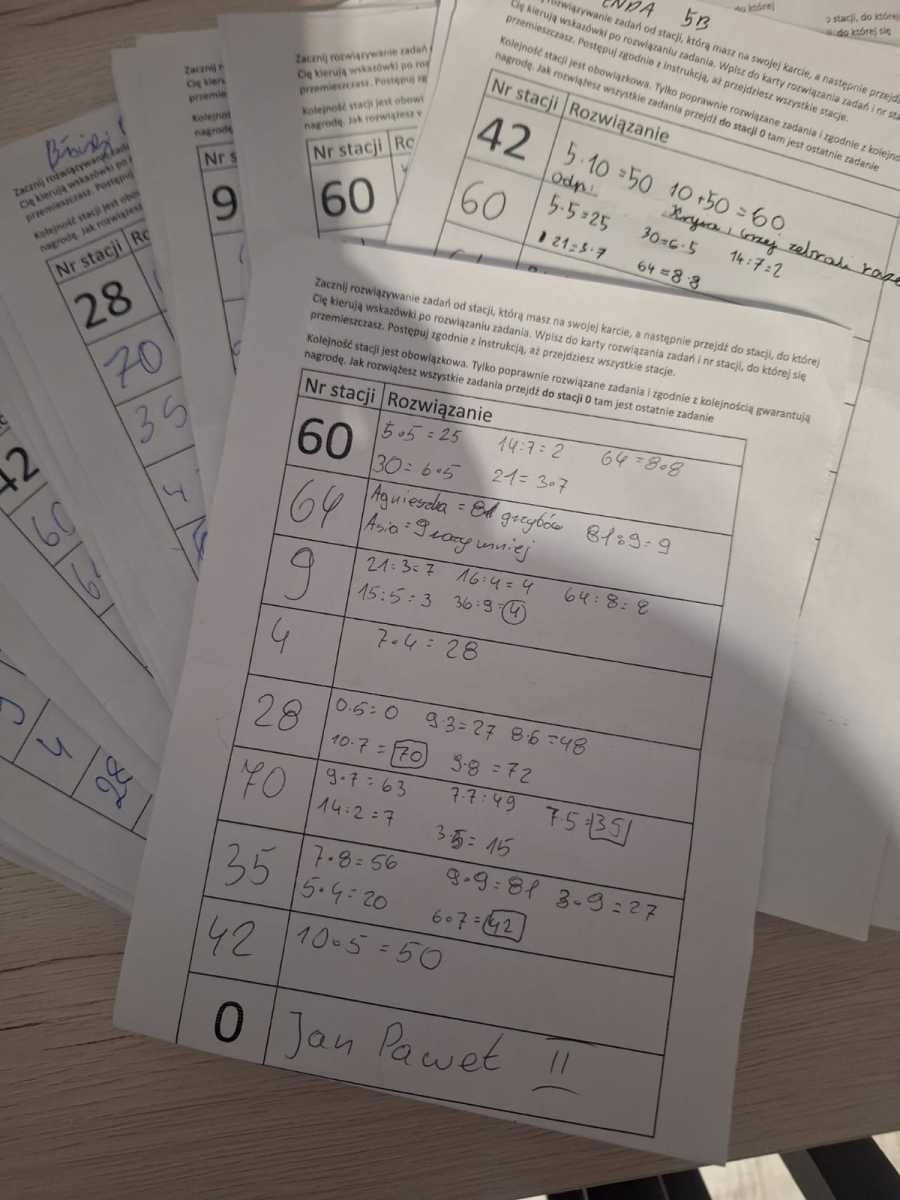 Zwieńczeniem matematycznych rywalizacji z tabliczką mnożenia było ułożenie hasła: JAN PAWEŁ II
