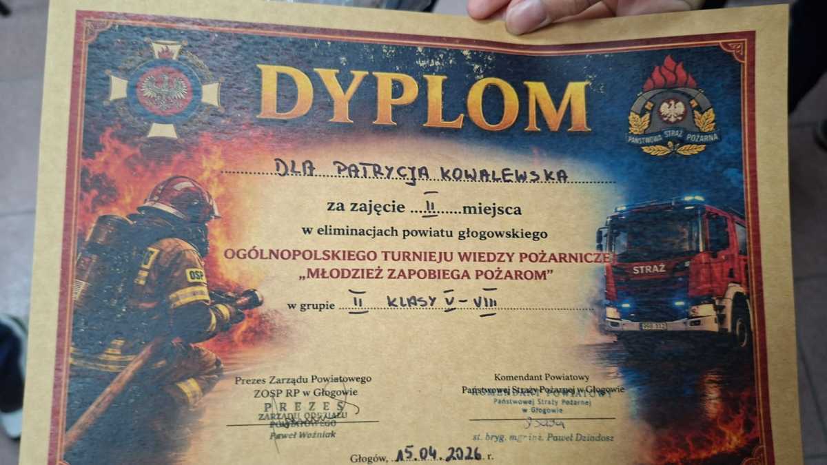 Znakomity wynik zanotowała Patrycja Kowalewska, uczennica klasy 7, która wykazała się imponującą wiedzą z zakresu ratownictwa i ochrony przeciwpożarowej, zdobywając zaszczytne II miejsce! 🥈🏆 Patrycjo – wielkie brawa za Twoją pasję i determinację!