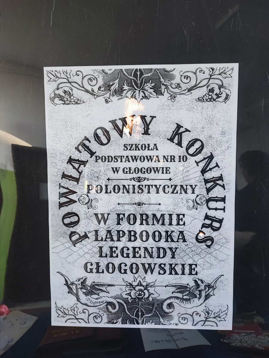 28 kwietnia 2026 r. uczestniczyliśmy w uroczystym wręczeniu nagród w Powiatowym Konkursie Polonistycznym w formie lapbooka pt. „Legendy głogowskie” organizowanym przez Szkołę Podstawową nr 10 w Głogowie.