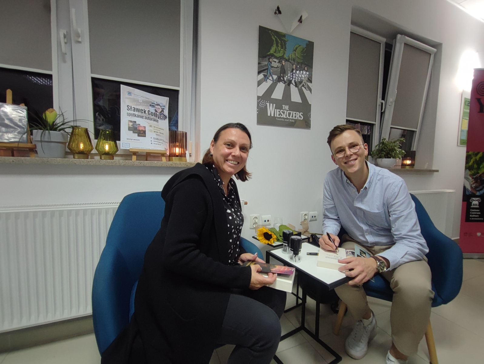 25 września bibliotek publiczna w Jerzmanowej zaprosiła swoich czytelników na niezwykłą górską wyprawę. Za sprawą znanego pisarza Sławka Gortycha oraz prowadzącej spotkanie, przewodnik sudeckiej Marty Kołodziej, czytelnicy przenieśli się w magiczny świat Karkonoszy. Oczywiście przedstawiciele biblioteki szkolnej przy Szkole Podstawowej im. Jana Pawła II w Jerzmanowej uczestniczyli w tym niecodziennym wydarzeniu. Autograf zdobyty, książki podpisane przez pisarza można wypożyczać w szkolnej bibliotece. Dziękujemy paniom bibliotekarkom z biblioteki publicznej w Jerzmanowej za to wspaniała czytelnicze święto.