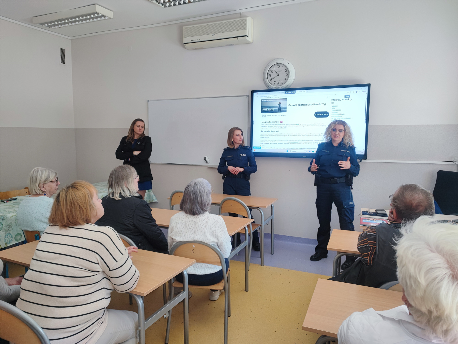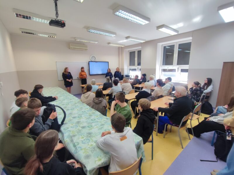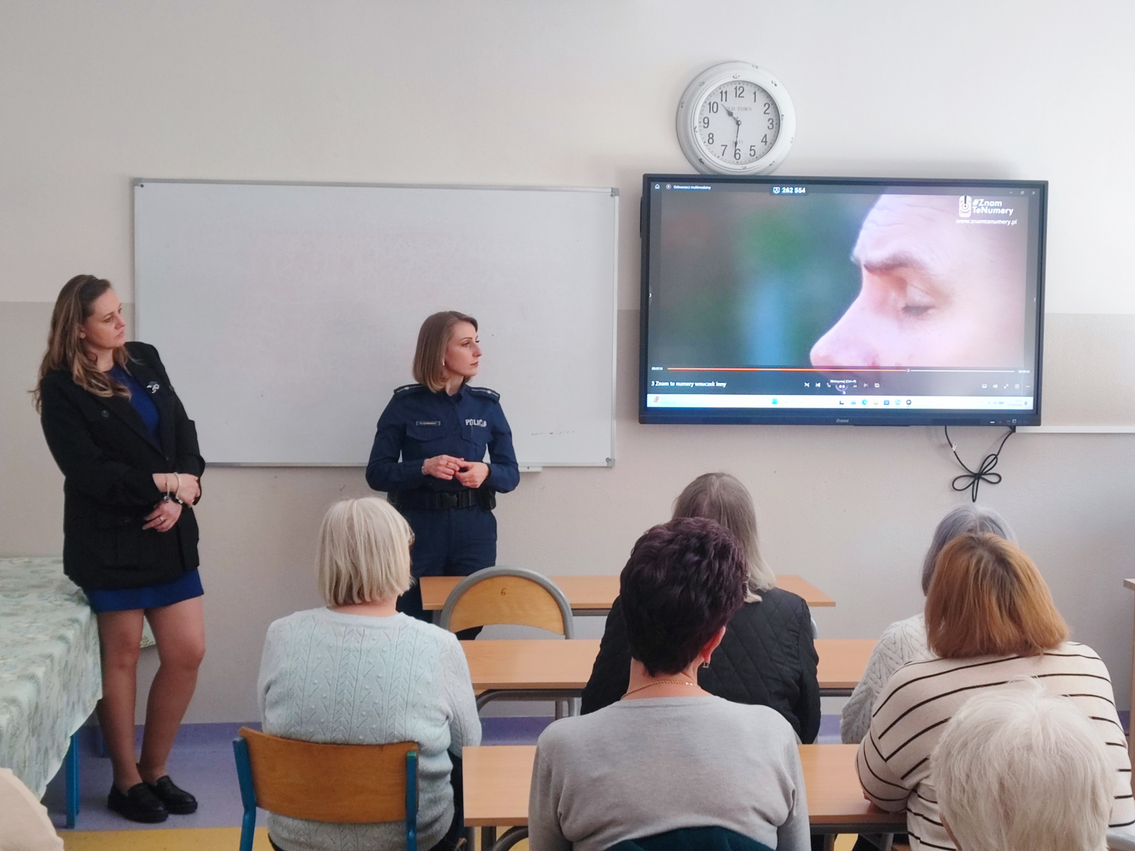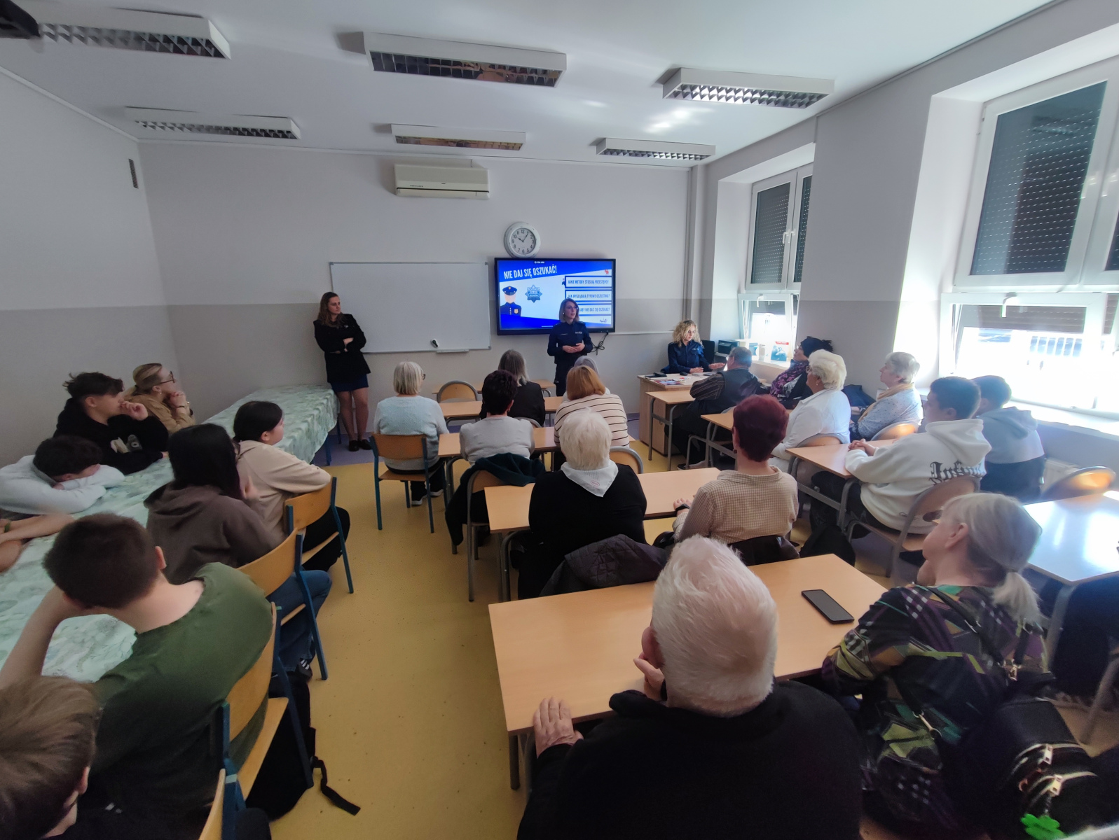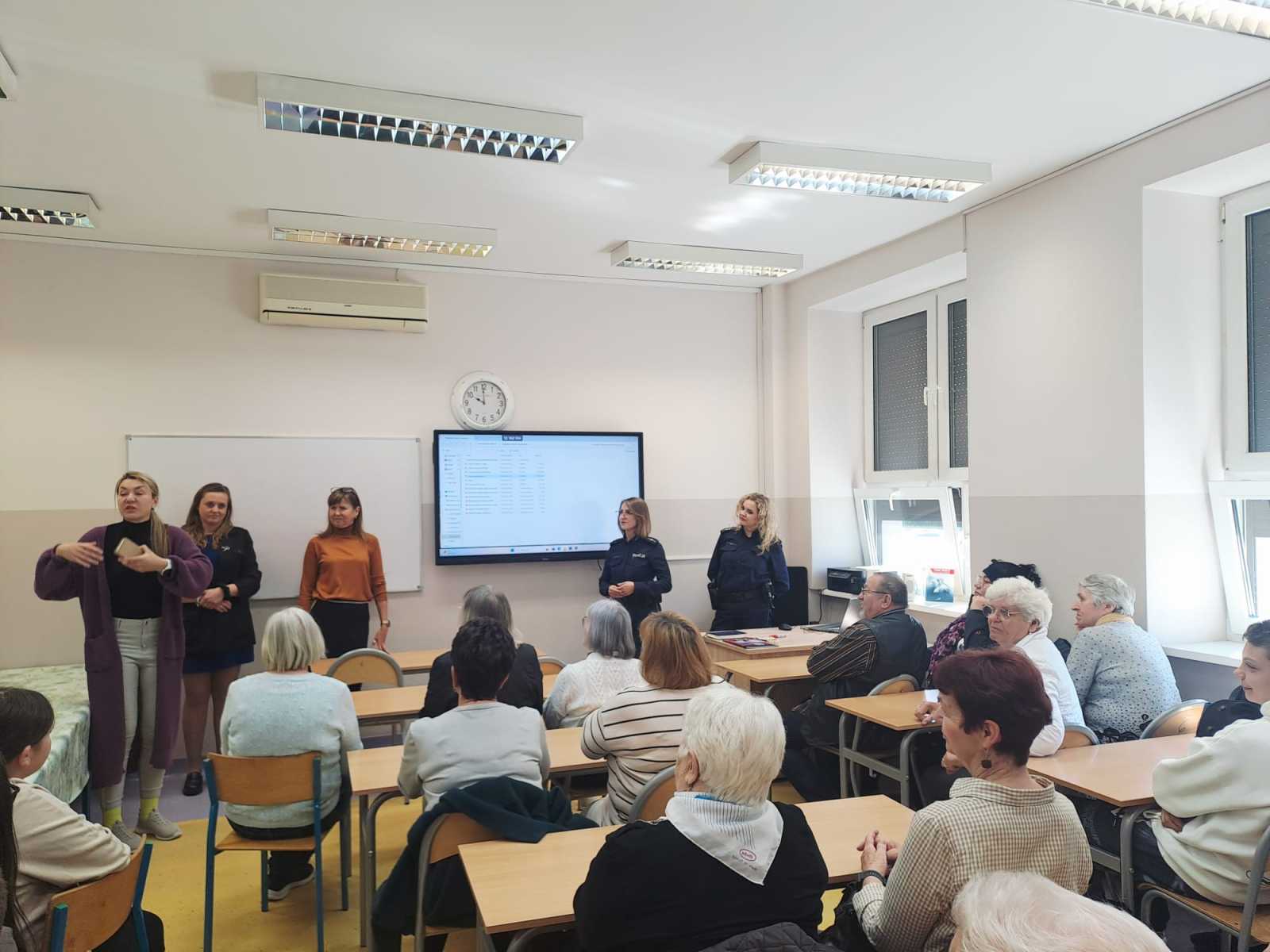 27 kwietnia uczniowie klasy 7 uczestniczyli w niezwykłej lekcji. W ramach programu Międzypokoleniowa szkoła odbyło się spotkanie z policjantkami z Komendy Powiatowej Policji w Głogowie. W spotkaniu uczestniczyli także seniorzy z Klubu Seniora w Jerzmanowej. Zajęcia dotyczyły szeroko pojętego bezpieczeństwa. Policjantki omówiły najbardziej popularne zagrożenia czekający na użytkowników w sieci. Na szczęście nasi seniorzy wykazali się dużą znajomością tematu i wiedzieli jak prawidłowo zareagować w sytuacji, gdy ktoś chce i oszukać metodą “na wnuczka” albo “policjanta”. Dziękujemy KPP w Głogowie za wartościowe spotkanie. Mamy nadzieję, że dzięki zdobytym wiadomościom zarówno uczniowie jak i seniorzy będą jeszcze bardziej ostrożni i czujni.