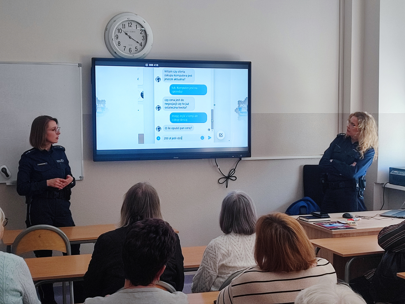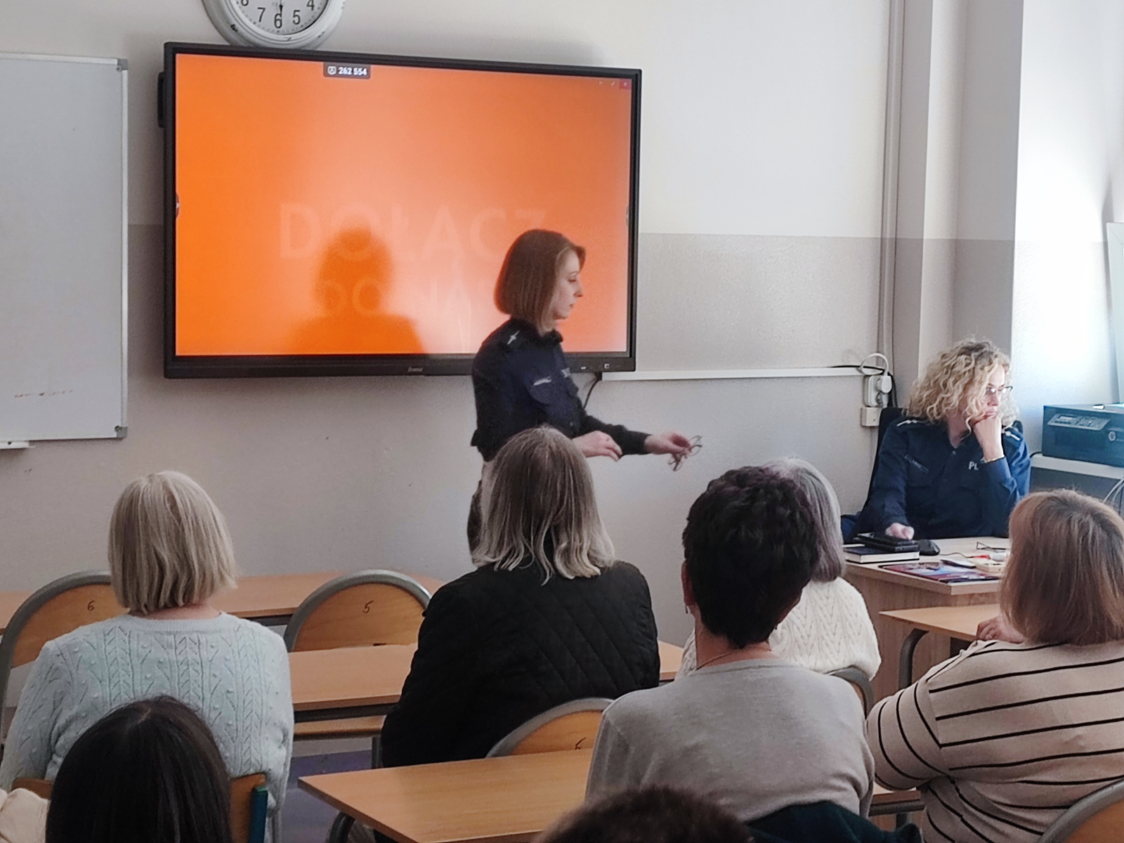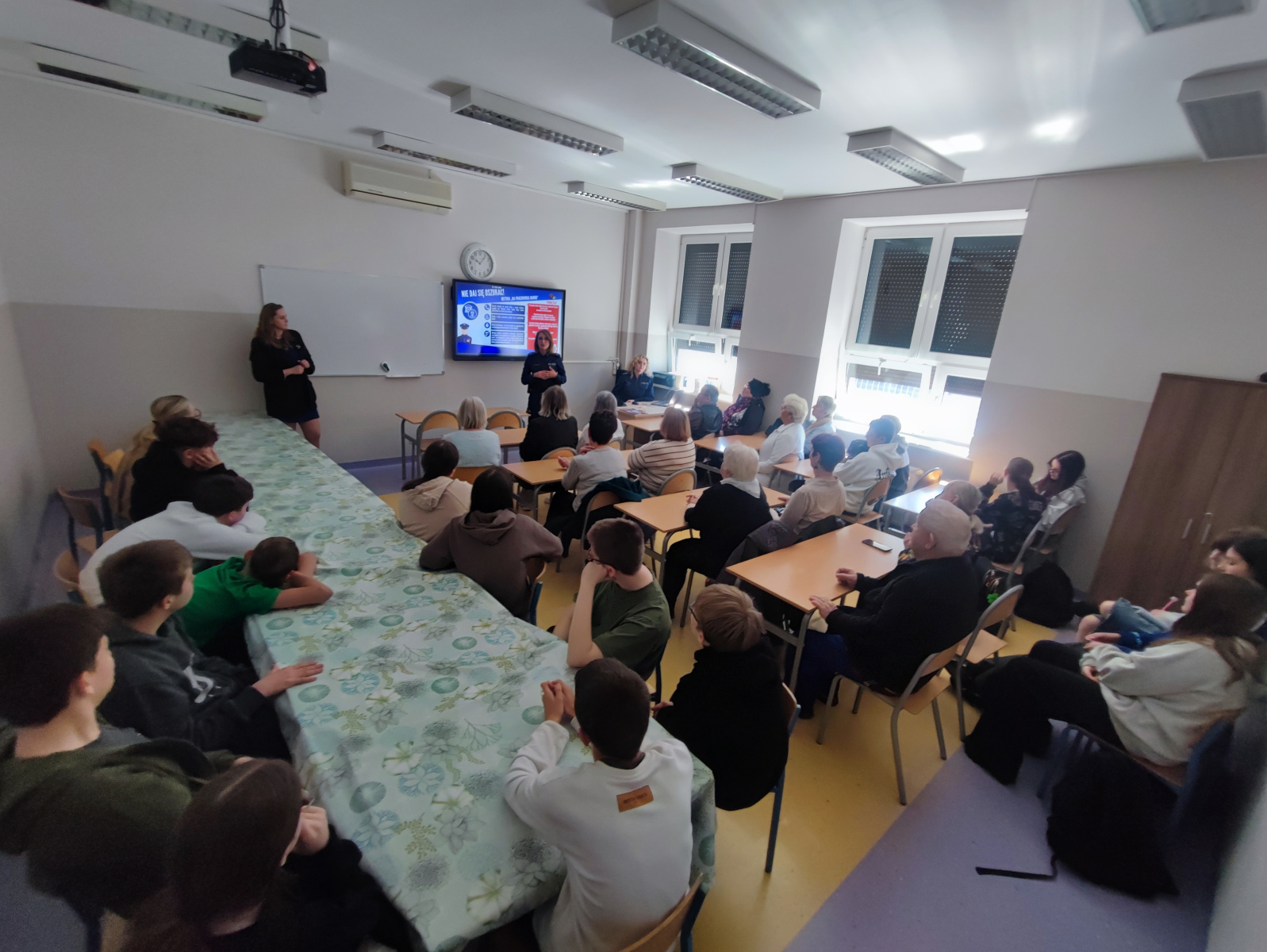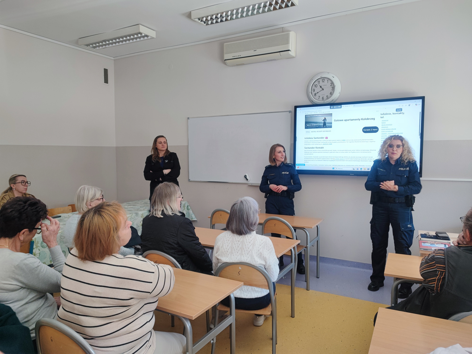 27 kwietnia uczniowie klasy 7 uczestniczyli w niezwykłej lekcji. W ramach programu Międzypokoleniowa szkoła odbyło się spotkanie z policjantkami z Komendy Powiatowej Policji w Głogowie. W spotkaniu uczestniczyli także seniorzy z Klubu Seniora w Jerzmanowej. Zajęcia dotyczyły szeroko pojętego bezpieczeństwa. Policjantki omówiły najbardziej popularne zagrożenia czekający na użytkowników w sieci. Na szczęście nasi seniorzy wykazali się dużą znajomością tematu i wiedzieli jak prawidłowo zareagować w sytuacji, gdy ktoś chce i oszukać metodą “na wnuczka” albo “policjanta”. Dziękujemy KPP w Głogowie za wartościowe spotkanie. Mamy nadzieję, że dzięki zdobytym wiadomościom zarówno uczniowie jak i seniorzy będą jeszcze bardziej ostrożni i czujni.