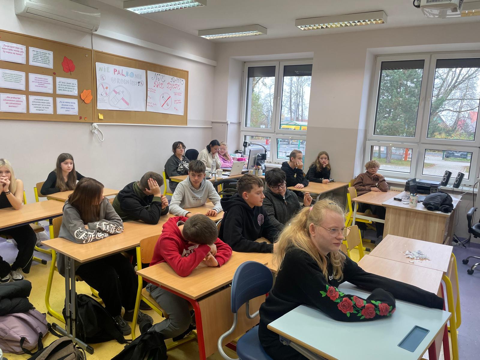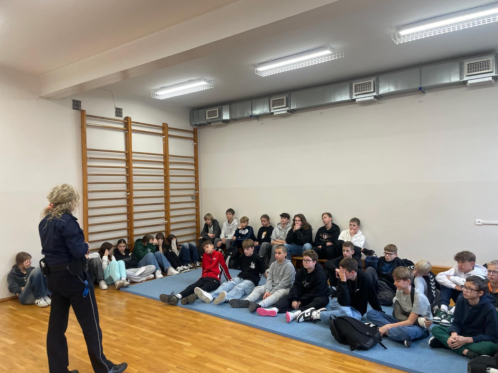 Dnia 7 listopada odbyły się zajęcia z policjantem w klasach 5b, 6a, 7a, 7b i 7c. Na spotkaniu rozmawiano i poruszano temat agresji i przemocy wśród młodzieży, a zwłaszcza cyberprzemocy, czyli coraz częściej pojawiającym się hejcie w mediach społecznościowych czy komunikatorach internetowych, z których korzysta młodzież. Panie policjantki omówiły z uczniami rodzaje przemocy, uświadomiły ich, że nikt nie jest anonimowy w internecie oraz przedstawiły konsekwencje prawne.