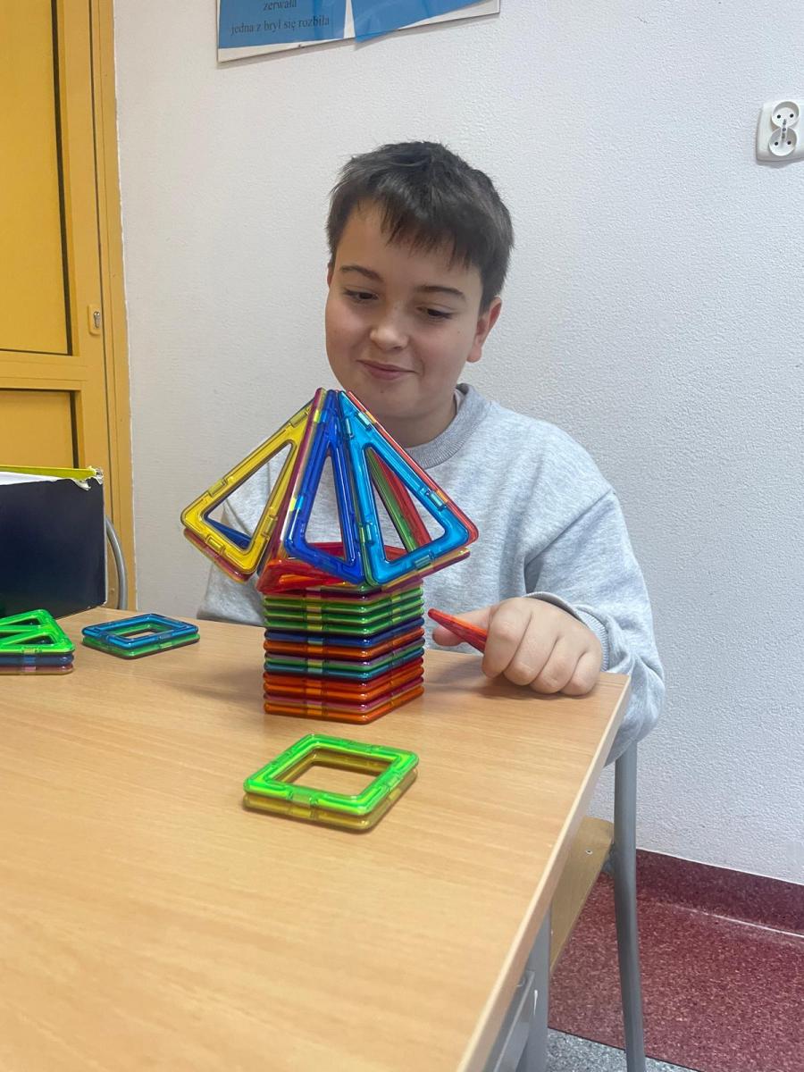 Lekcje matematyki w naszej szkole nabrały wyjątkowego, przedświątecznego blasku! Wykorzystując nowoczesne magnetyczne klocki Magformers, zakupione w ramach programu Laboratoria Przyszłości, nasi uczniowie połączyli naukę geometrii z radosnym tworzeniem bożonarodzeniowych dekoracji.