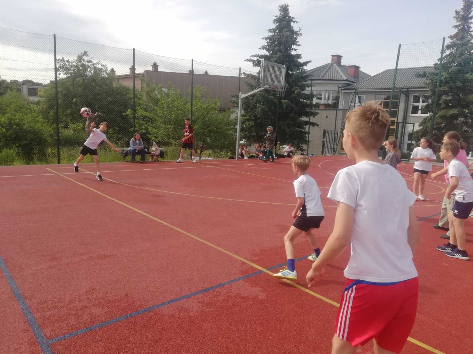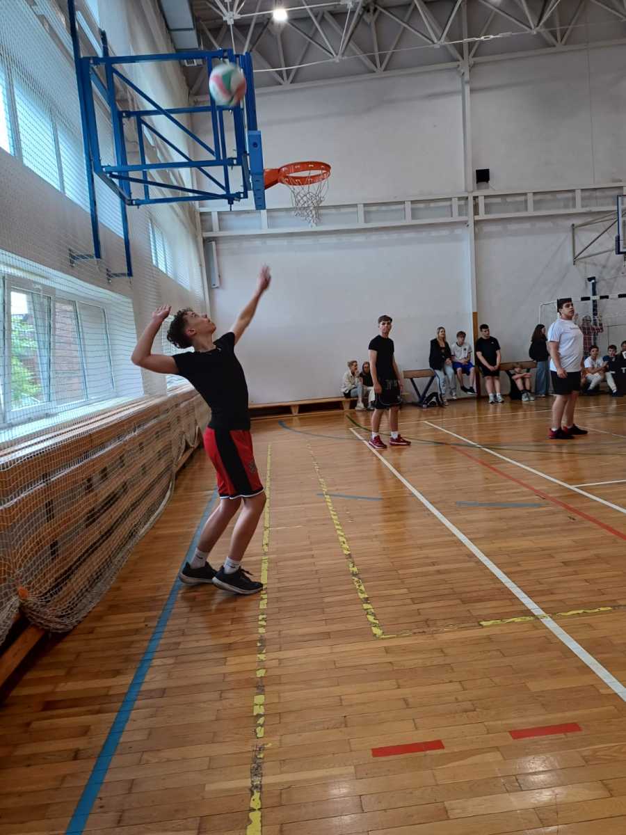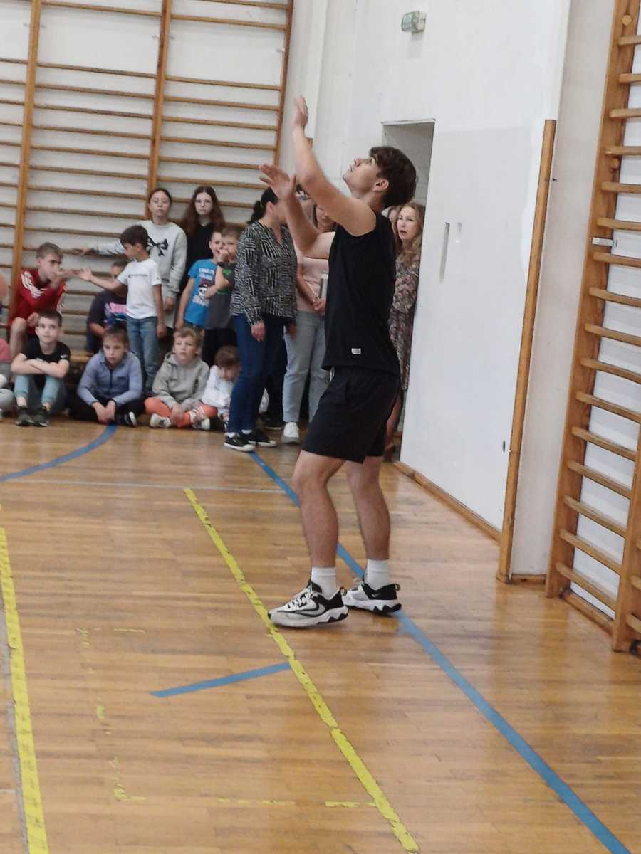 W zaciętej walce na parkiecie stanęli uczniowie klas 6-8, a gościnnie pojawili się również absolwenci rocznika 2024. Najmłodsi – uczniowie klas 4-5 – w tym czasie doskonale bawili się, grając w Dwa Ognie.