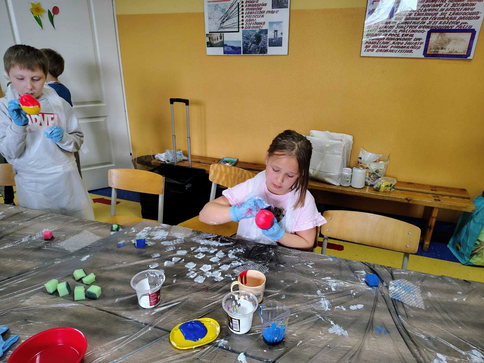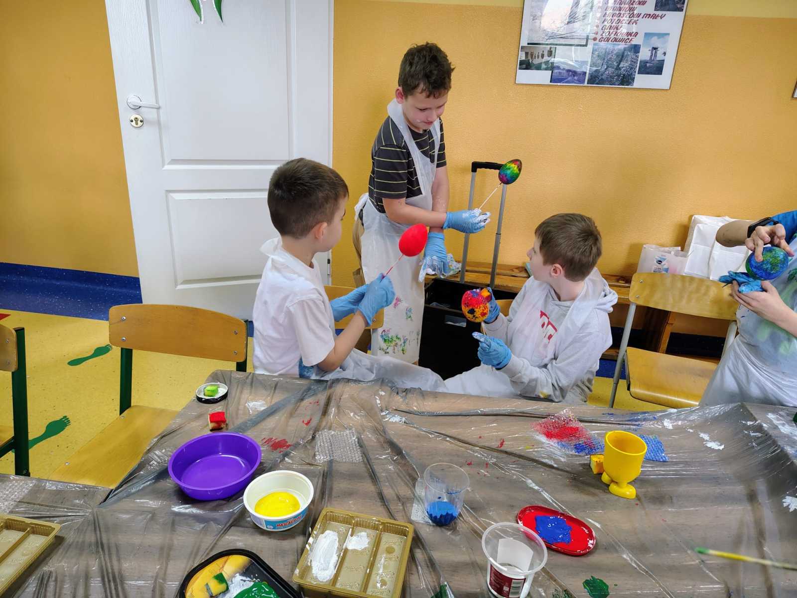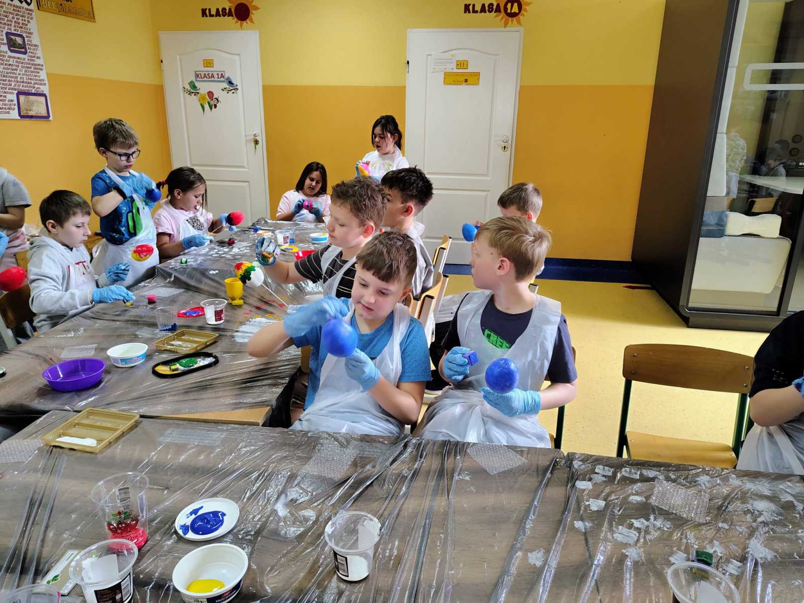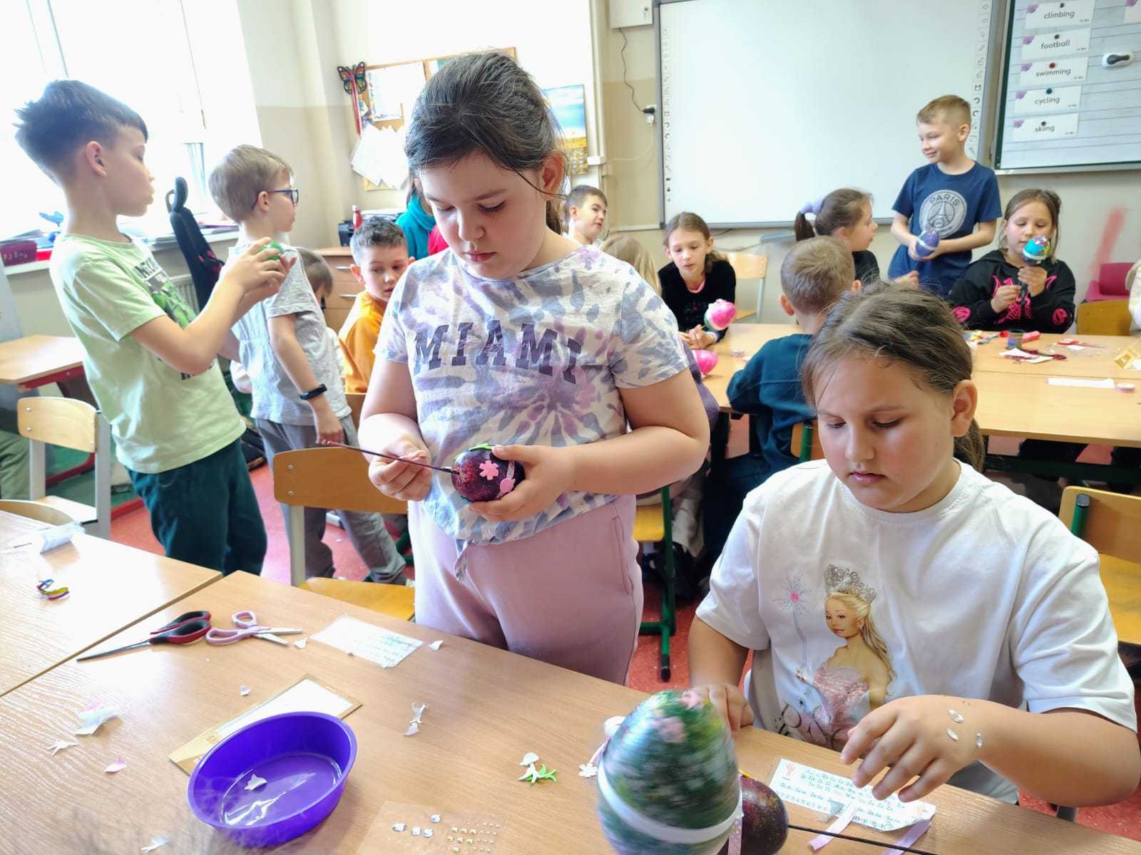 7 kwietnia uczniowie klasy 2a i 2b miały możliwość wykonania pięknych ozdób wielkanocnych podczas warsztatów zorganizowanych z p. Ewą Kaczor. Dzieci miały możliwość poznać ciekawe techniki plastyczne. Udało się stworzyć piękne kompozycje, które na pewno staną się ozdobą wielkanocnych stołów.