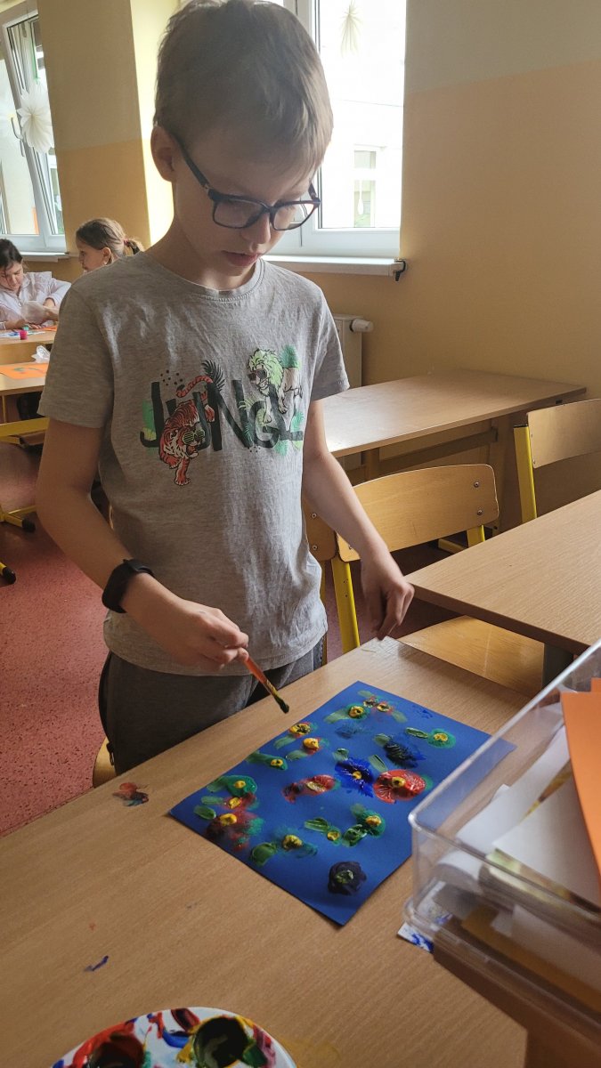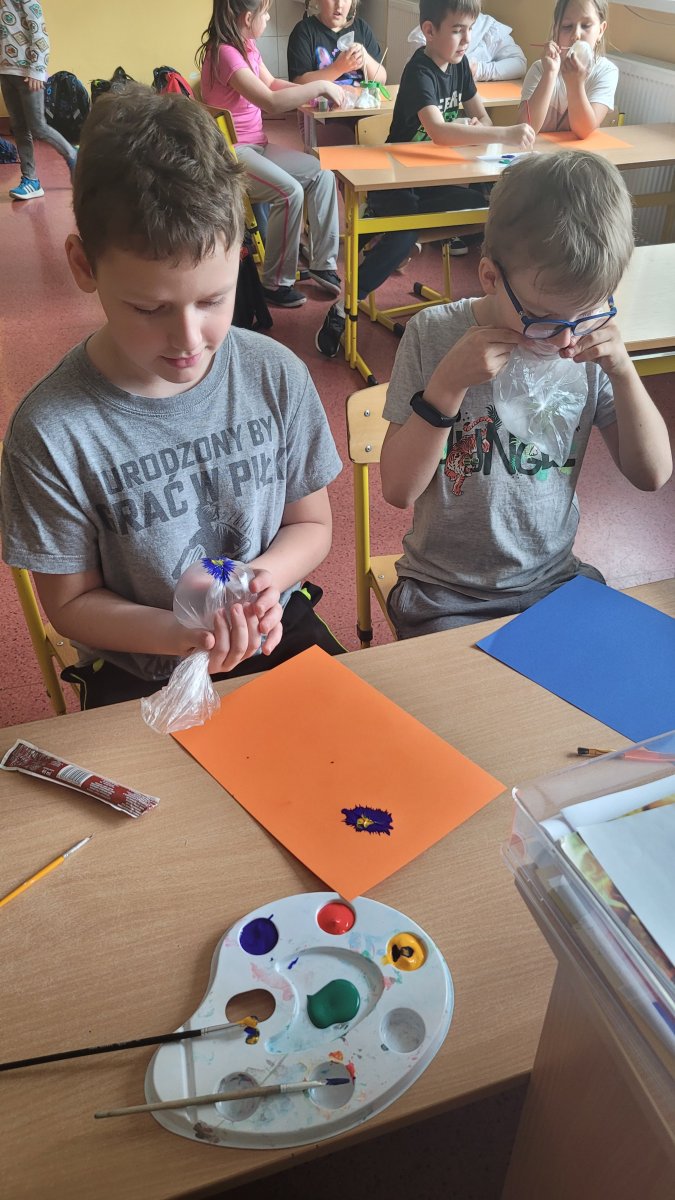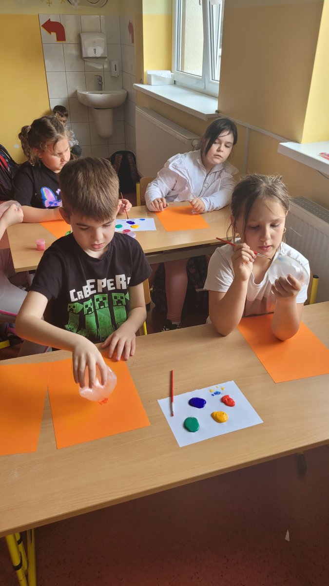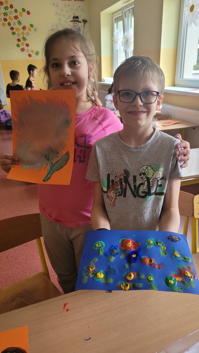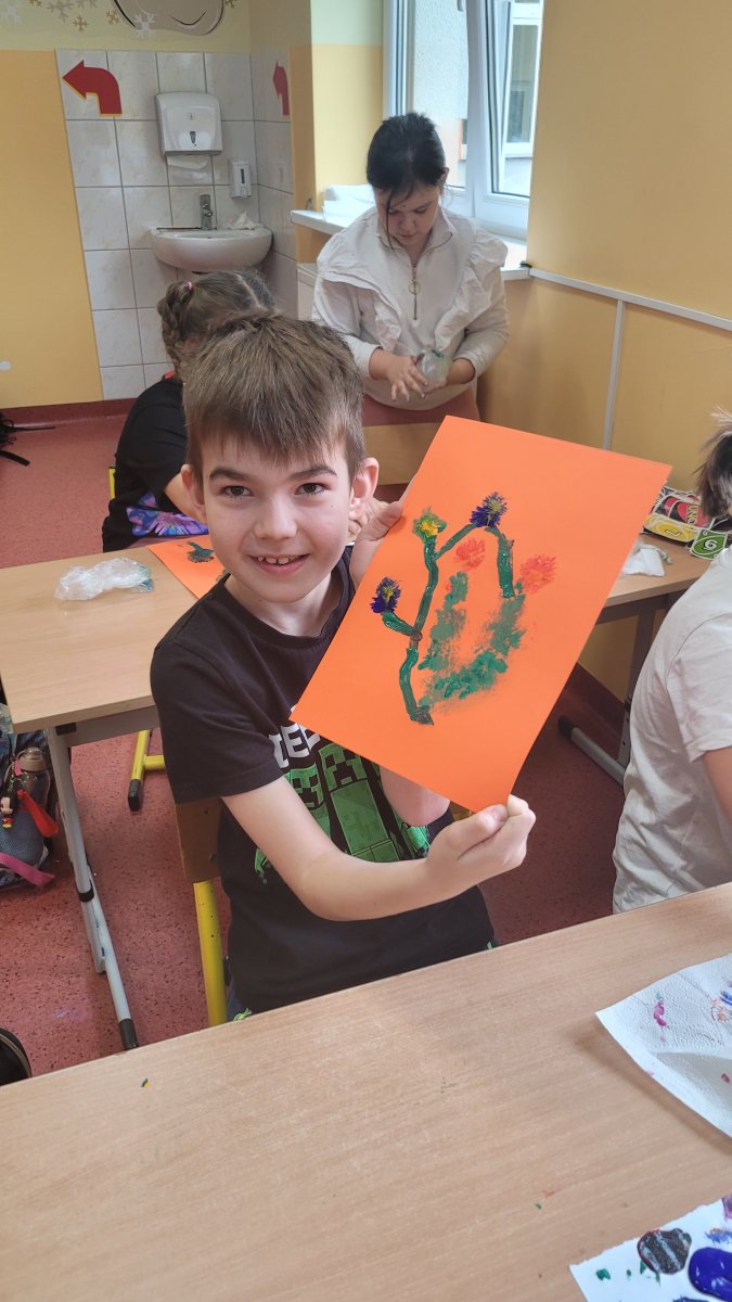 W naszej świetlicy zapanowała prawdziwie wiosenna atmosfera! Wykorzystując proste materiały – woreczki spożywcze, kolorowe kartki i farby – stworzyliśmy niezwykłe prace plastyczne inspirowane budzącą się do życia przyrodą.