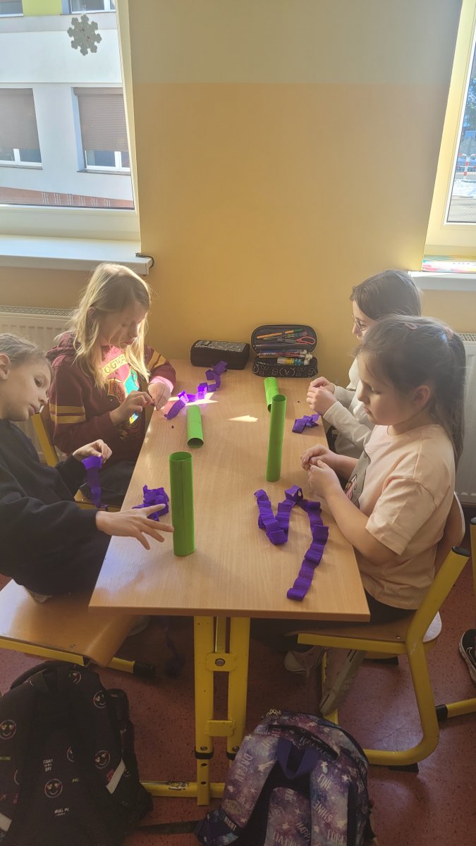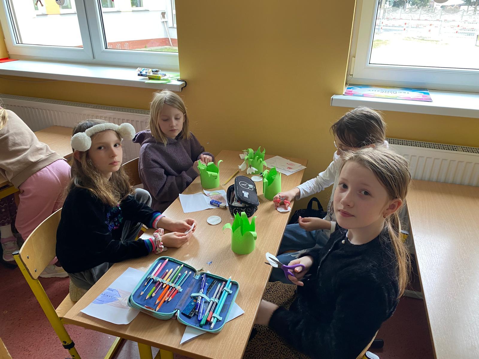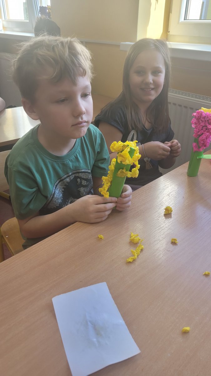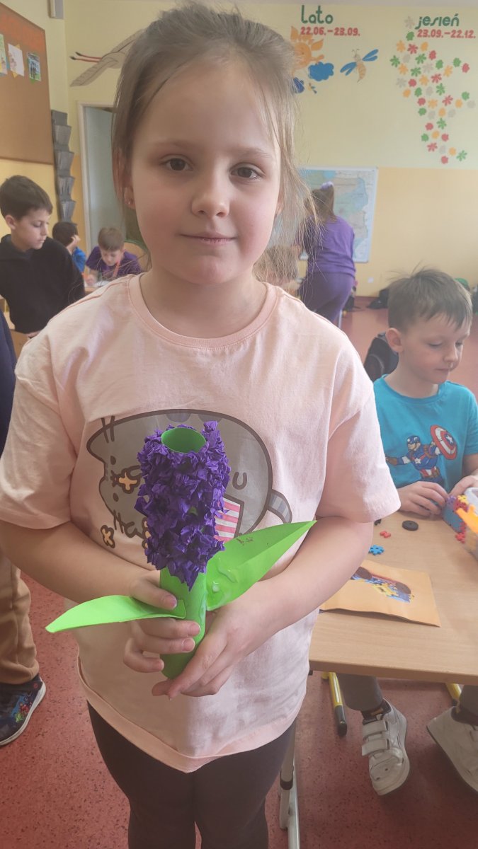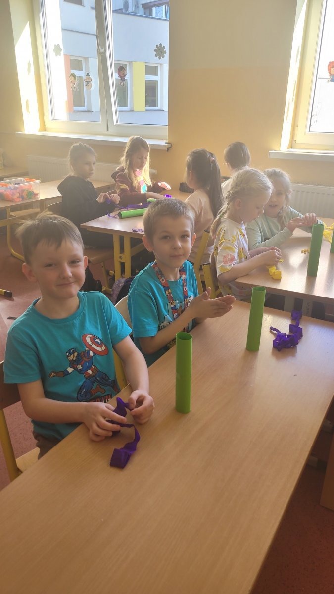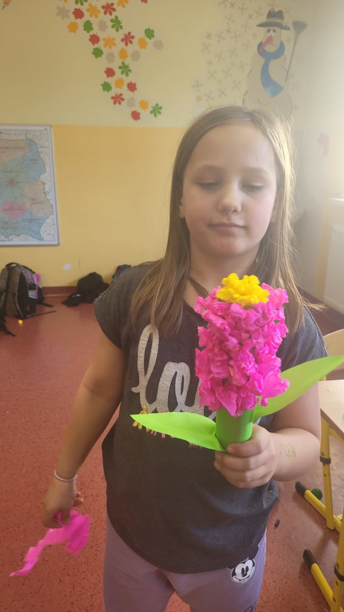 Wiosna tuż, tuż! Podczas zajęć świetlicowych rozmawialiśmy o pierwszych oznakach nadchodzącej wiosny. Dzieci z zaangażowaniem wymieniały zwiastuny tej pięknej pory roku, takie jak przebiśniegi, krokusy czy bazie kotki. Podczas zajęć plastycznych wykonaliśmy kolorowe wiosenne kwiaty między innymi z bibuły i płatków kosmetycznych. Nasze prace stały się ozdobą świetlicowej galerii, wprowadzając do niej radosny, wiosenny nastrój!