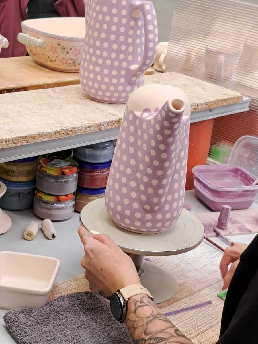 Następnie udali się do Bolesławca, gdzie zwiedzili Żywe Muzeum Ceramiki. Brali także udział w warsztatach plastycznych – każdy uczestnik wycieczki udekorował kubek, który po wypaleniu zostanie przysłany do szkoły. Te piękne pamiątki rozdadzą dzieciom wychowawczynie klas.