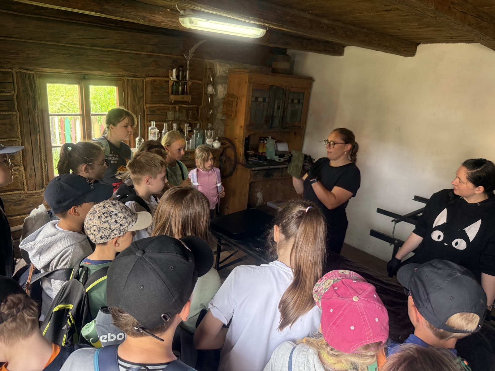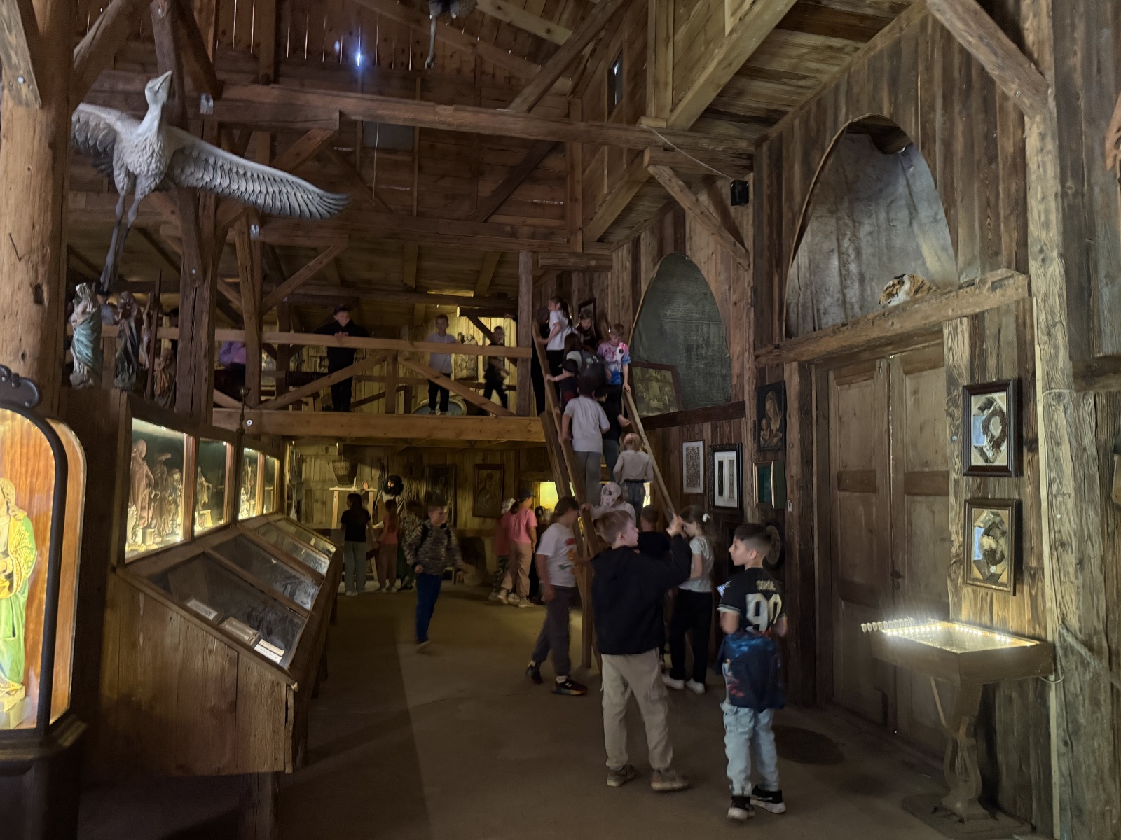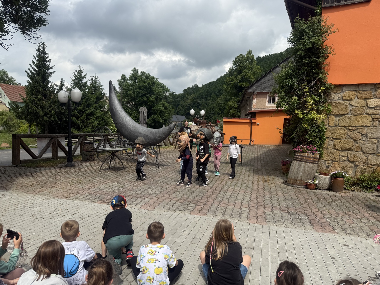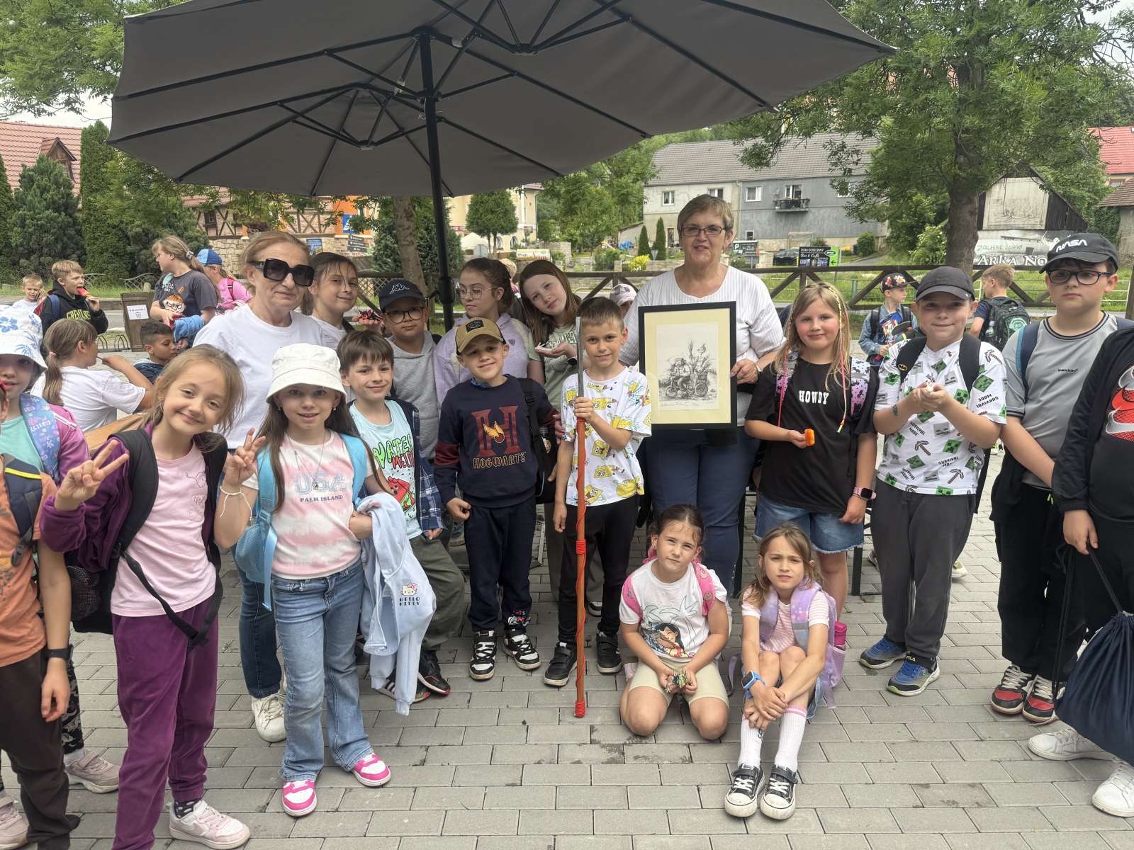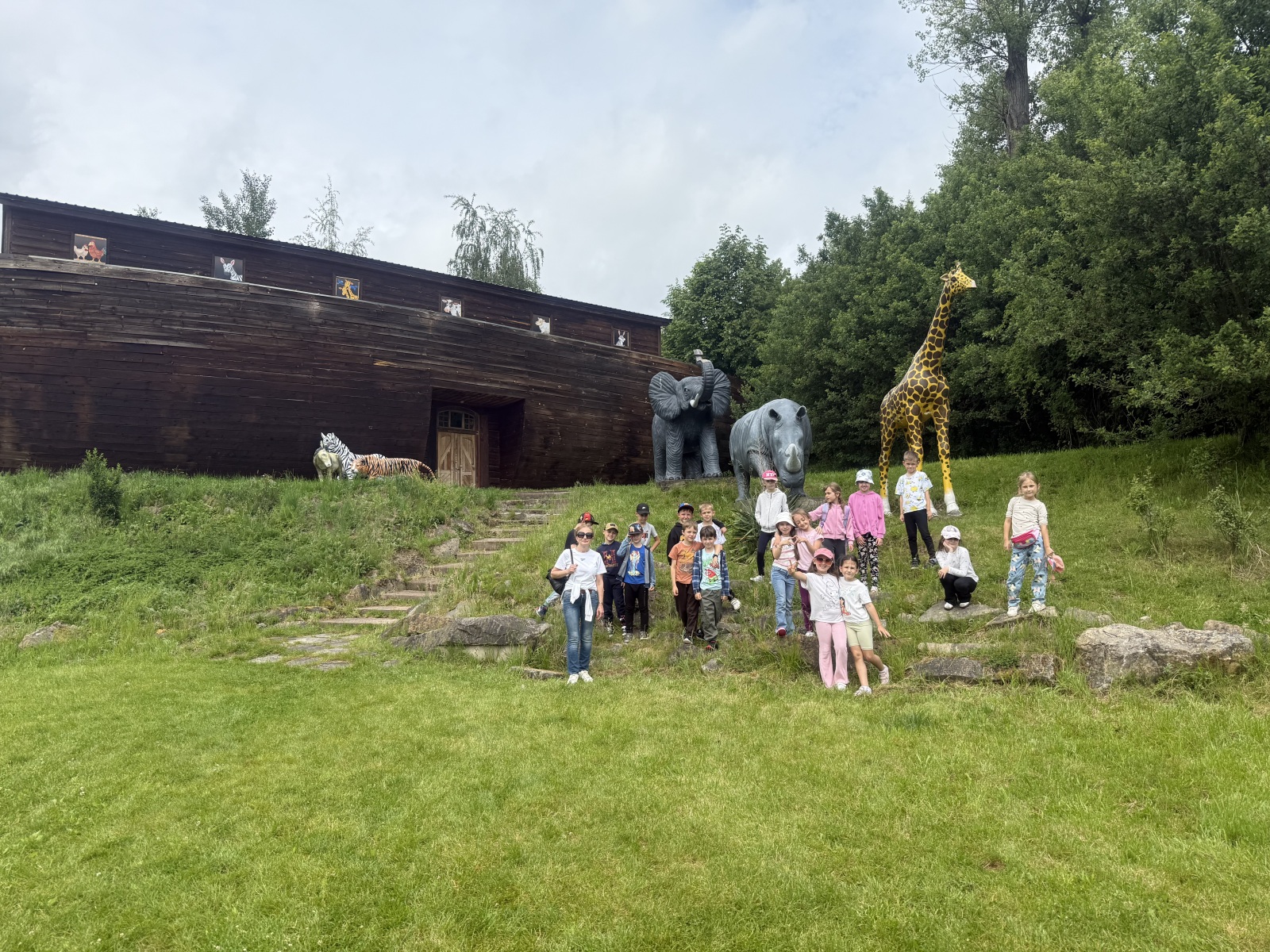 Dnia 2.06.2025 r. uczniowie klasy: 1b, 3a i 3b wzięli udział w wycieczce do Pławnej Dolnej. Na terenie obiektu znajdują się domki, w których prezentowane są dawne rzemiosła, Arka Noego i średniowieczny plac zabaw z koniem trojańskim. Dzieci uczestniczyły w warsztatach litografii (wykonaną pracę mogły zabrać do domu). Następnie wysłuchały kilku legend przedstawiających historię regionu, ilustrowanych lalkami naturalnej wielkości. Miały także okazję same animować tymi lalkami. Niewątpliwą atrakcją było zwiedzanie udostępnionej Arki Noego – okazałego drewnianego obiektu. Długo będą pamiętać i polecać innym spędzony ciekawie czas, tym bardziej że pogoda dopisała, a atrakcji było co niemiara. Organizatorami wycieczki byli: Iwona Gorzelańczyk, Iwona Bylińska, Grażyna Kołtowska i Janeta Białek.