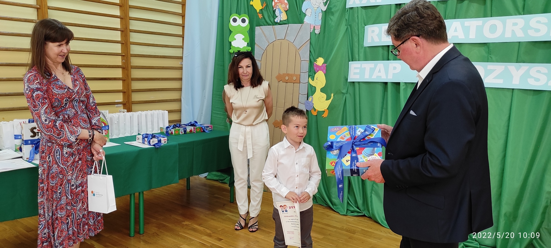 Wszyscy uczestnicy konkursu otrzymali  dyplomy oraz nagrody ufundowane i osobiście wręczone przez Wójta Gminy Jerzmanowa – Pana Lesława Golbę. Wszystkim uczestnikom gratulujemy! Życzymy dalszych sukcesów. Rodzicom i wychowawcom dziękujemy za wsparcie.