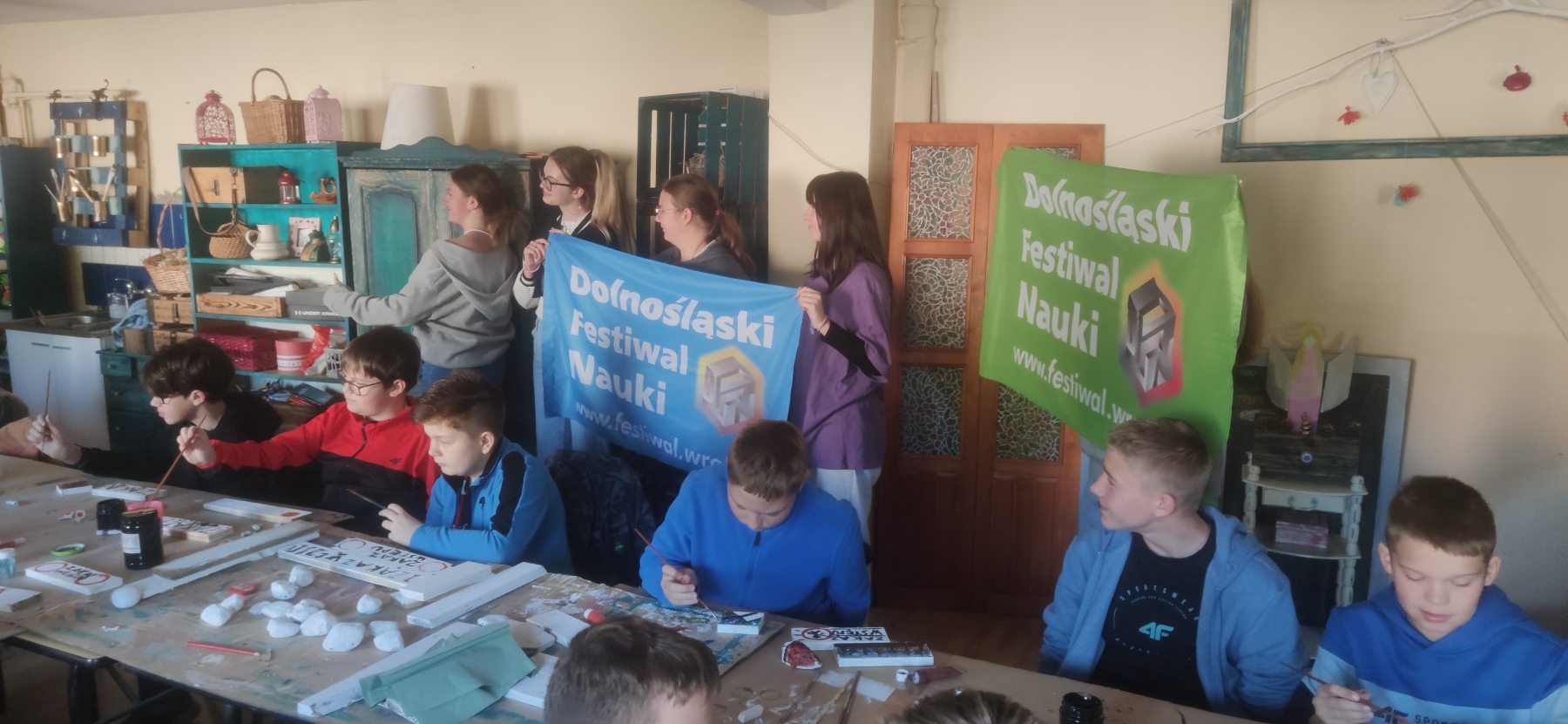 W piątek, 7 października uczniowie klas szóstych mieli przyjemność uczestniczyć w zajęciach kreatywnych zorganizowanych przez ZSSiB w Głogowie w ramach Dolnośląskiego Festiwalu Nauk. W ramach krótkiego wykładu dowiedzieli się, czym jest upcykling, natomiast w kolejnej części spotkania samodzielnie wykonywali prace plastyczne wykorzystując materiały z recyklingu. Zajęcia przebiegały w twórczej atmosferze a uczestnicy odkryli swój kreatywny potencjał. Dziękujemy nauczycielom z Zespołu Szkół Samochodowych i Budowlanych w Głogowie za ciekawe spotkanie. Do zobaczenia w przyszłym roku.