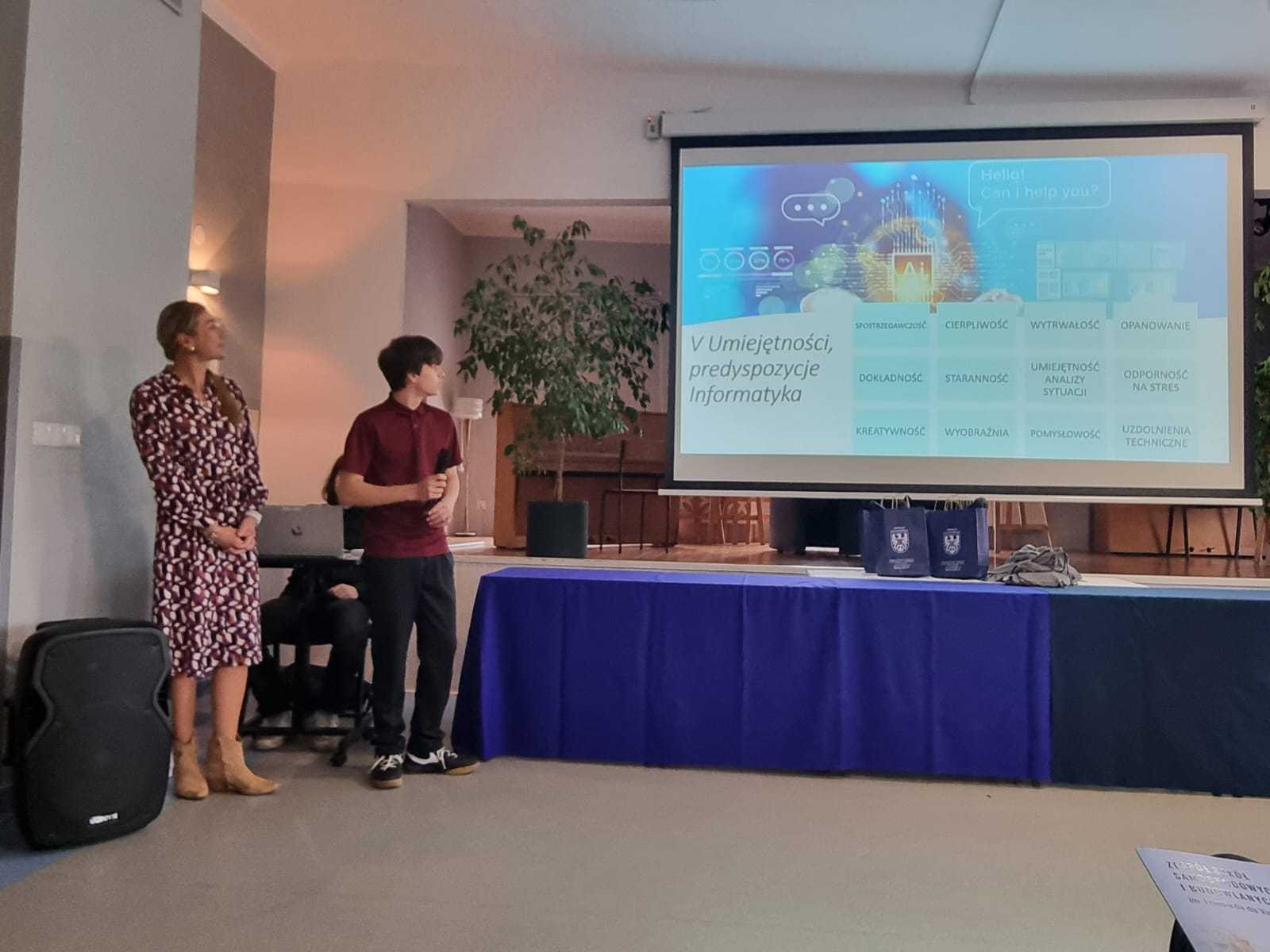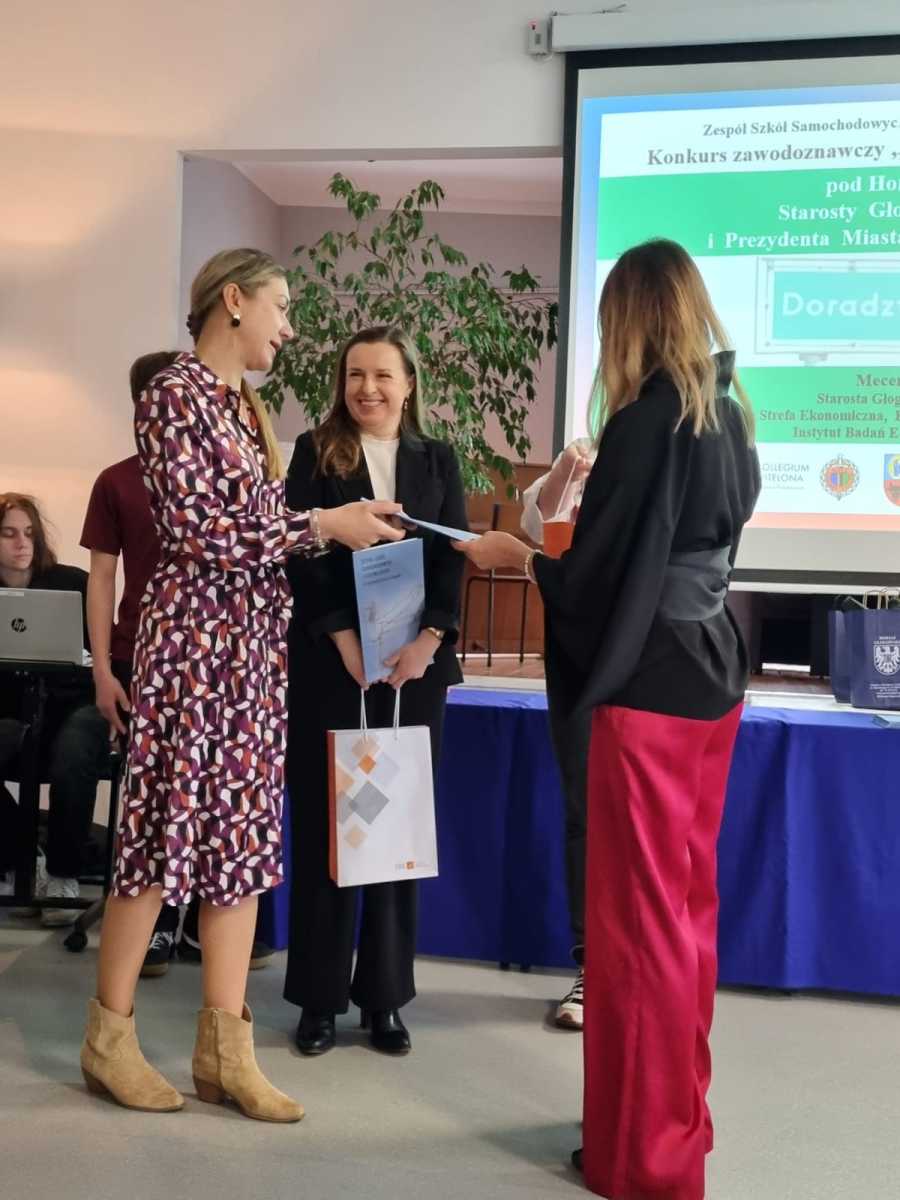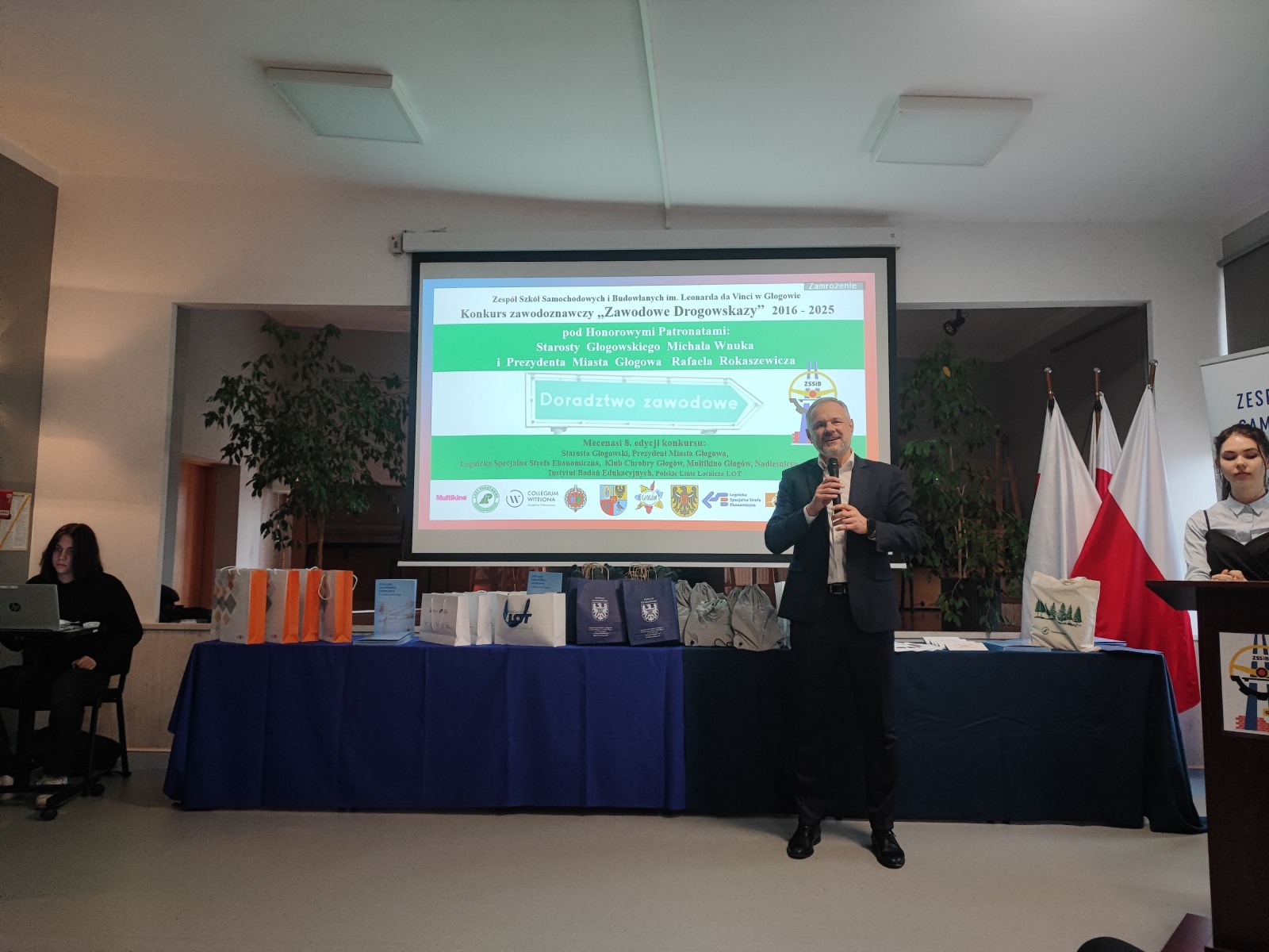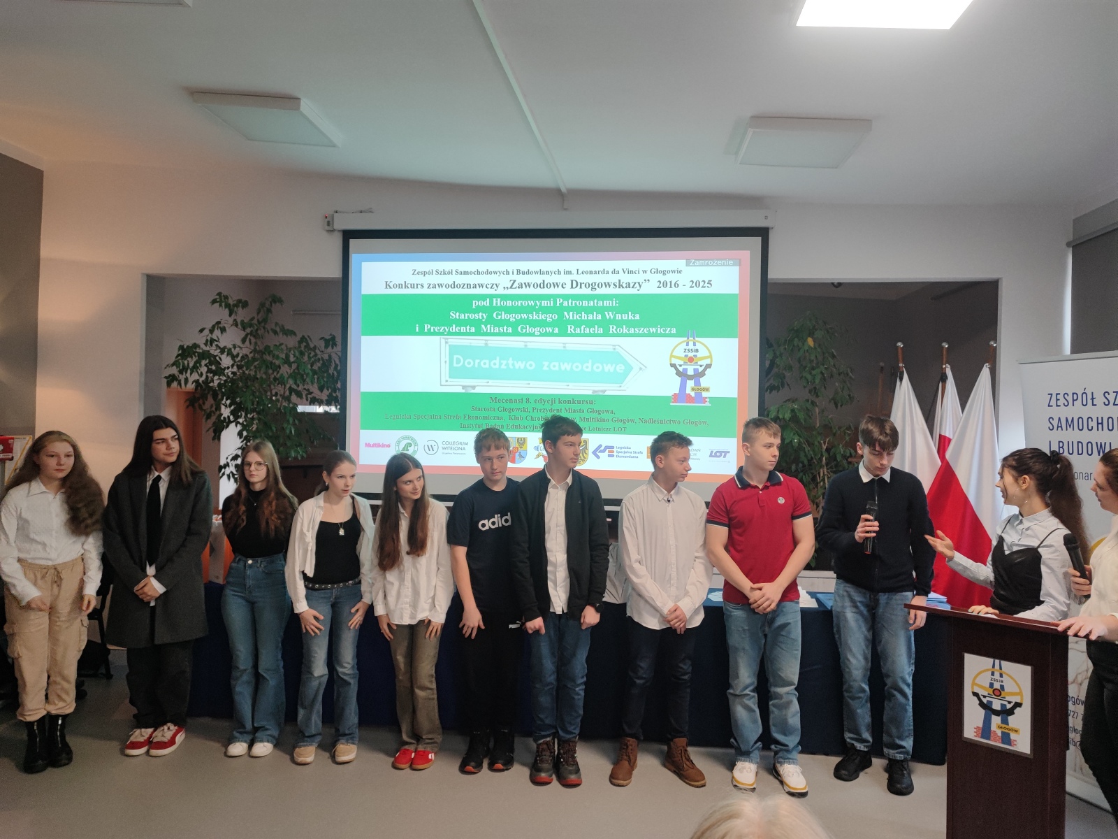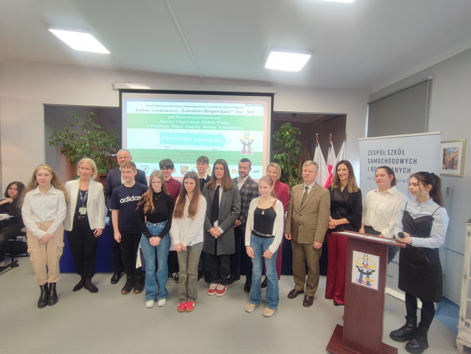 Kolejna edycja konkursu z doradztwa zawodowego organizowanego przez ZSSiB w Głogowie za nami. Uroczysta gala wręczenia nagród odbyła się 26 lutego w siedzibie szkoły. Honorowy patronat nad konkursem sprawują: Starosta Głogowski oraz Prezydent Miasta Głogowa. A niezmordowaną i jak zwykle niezwykle profesjonalną organizatorką jest doradczyni zawodowa, Joanna Gajdzińska. Z dumą informujemy, że uczeń klasy 7c, Wojciech Wolniak zajął I miejsce w tym prestiżowym konkursie. Z naszej szkoły swoją pracę zgłosił również Dominik Piątek z klasy 8b, który w zeszłym roku zajął II miejsce. W związku z tym, obie klasy miały przyjemność uczestniczyć zarówno w gali jak i warsztatach kompetencji miękkich prowadzonych przez Rektora PANS w Głogowie, dr Jarosława Hermaszewskiego. Opiekunem prac z ramienia Szkoły Podstawowej im. Jana Pawła II w Jerzmanowej była doradczyni zawodowa, pani Barbara Tuczyńska. Dziękujemy organizatorom za możliwość uczestnictwa w tak niezwykłym wydarzeniu. Wszystkim biorącym udział gratulujemy zaangażowania i życzymy dalszych sukcesów edukacyjno-zawodowych.
