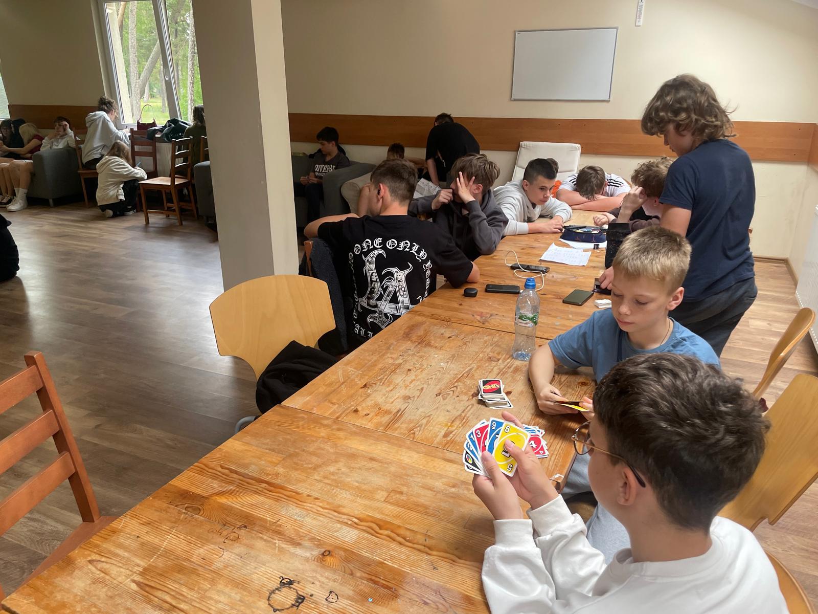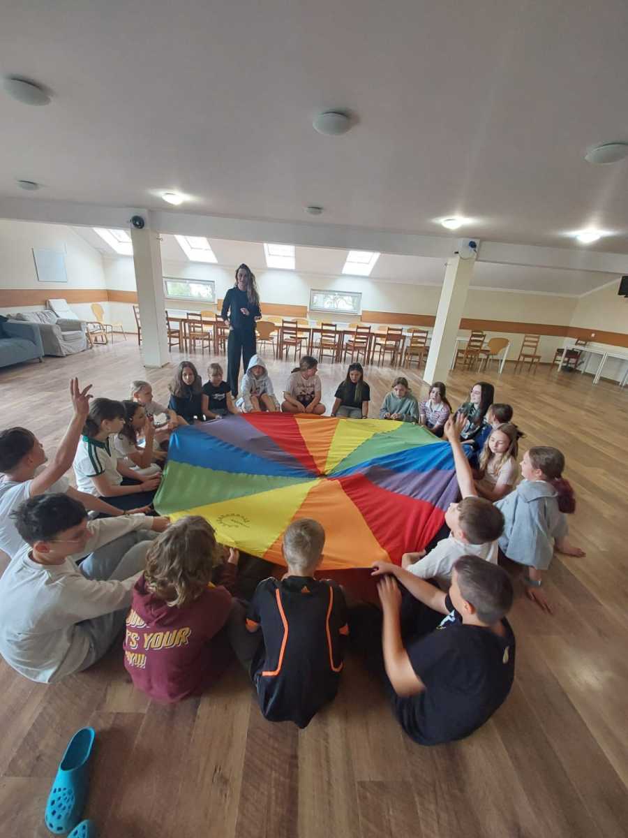 Dziś w Darłówku pogoda trochę nas nie rozpieszczała! Mimo to nie traciliśmy dobrych humorów i spędziliśmy dzień bardzo produktywnie. Do południa bawiliśmy się w najlepsze z animatorem! Były zabawy z chustą, klasyczne „Raz, dwa, trzy, Baba Jaga patrzy” oraz ekscytująca zabawa w rekina. Nie zapomnieliśmy też o nauce – dzieci miały zajęcia z języka angielskiego oraz z języka niemieckiego, podczas których uczyły się słówek związanych z wypoczynkiem nad morzem, nie zabrakło też matematyki. Popołudnie upłynęło nam na relaksie i zdrowej rywalizacji. Czas spędzaliśmy na grach towarzyskich i stolikowych. Były karty, zacięte mecze ping-ponga i oczywiście planszówki!