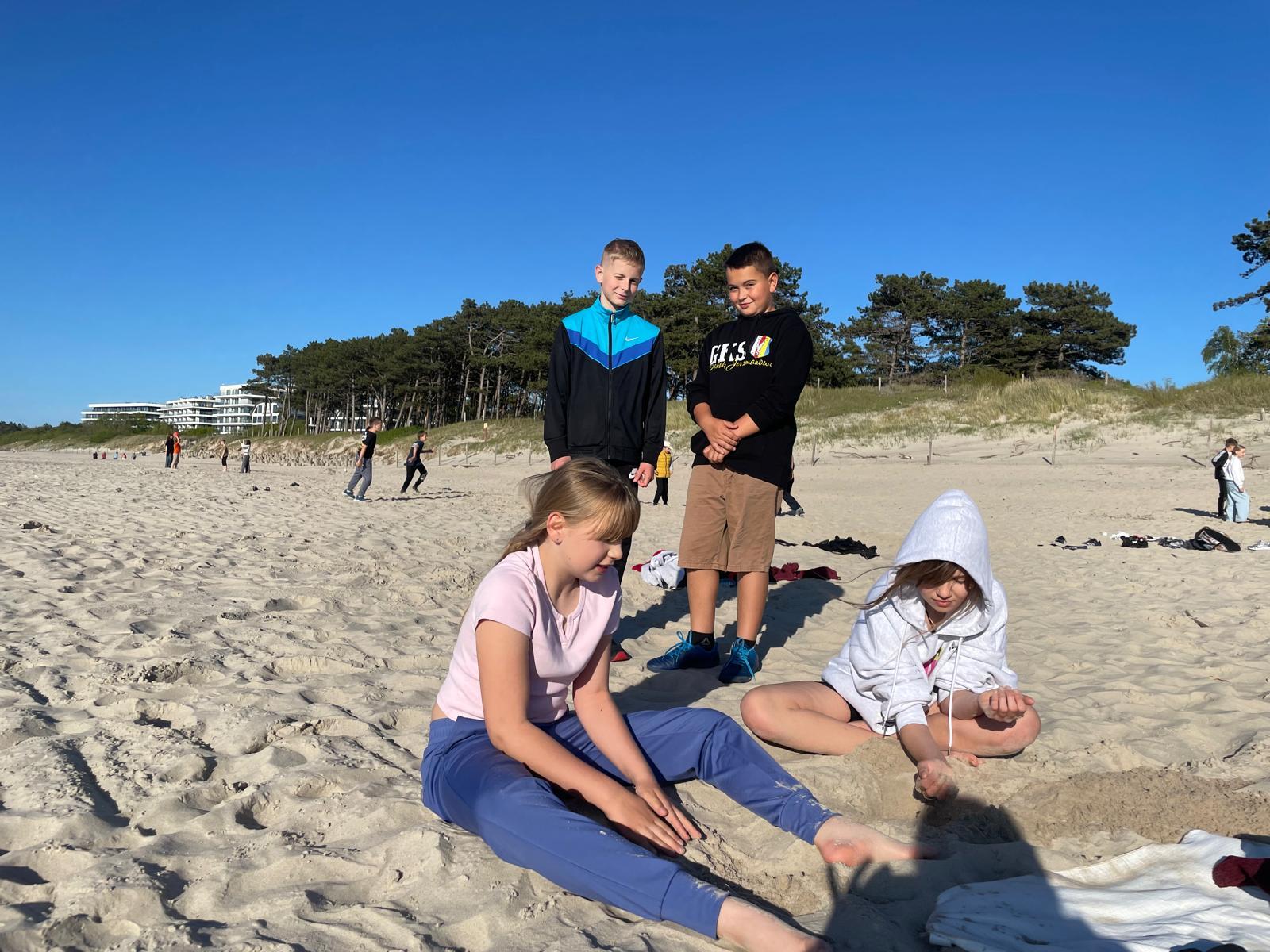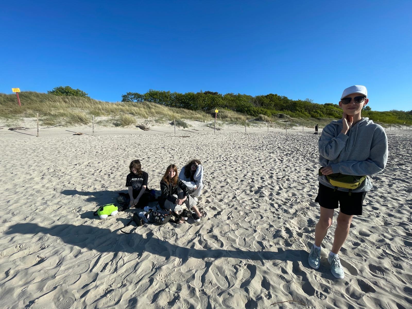 Wręcz przeciwnie – po krótkim odpoczynku nasi niestrudzeni odkrywcy natychmiast przywitali się z Bałtykiem! Pogoda dopisuje nam znakomicie, co sprawiło, że pierwsze chwile nad morzem były niezwykle radosne i pełne entuzjazmu.